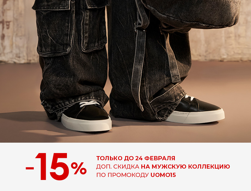Только до 24 февраля совершайте покупки товаров из мужского ассортимента со скидками до 70% на распродаже и получайте дополнительно -15% на всё по промокоду UOMO15 при условии оплаты заказа онлайн картой или через СБП с доставкой.*