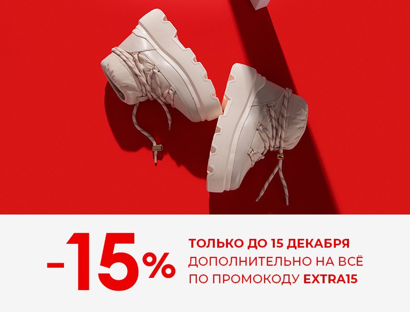 Только до 15 декабря совершайте покупки на распродаже до 70% и получайте дополнительно -15% на всё по промокоду EXTRA15 при условии оформления доставки и оплате онлайн.*