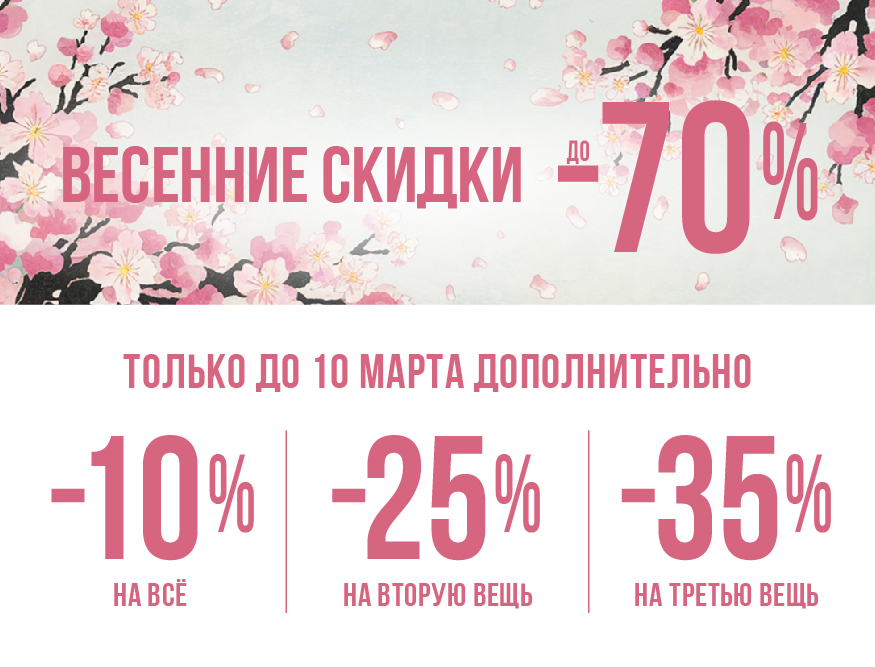 Только с 4 по 10 марта совершайте покупки на распродаже до 70% и получайте дополнительную скидку -10% на всё *.