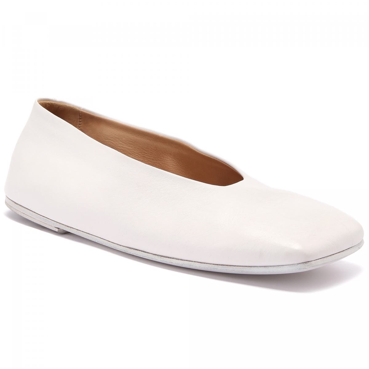 Балетки из мягкой натуральной замши белого цвета от Marsell. Модель на плоской кожаной подошве. Подкладка и стелька выполнены из натуральной кожи.