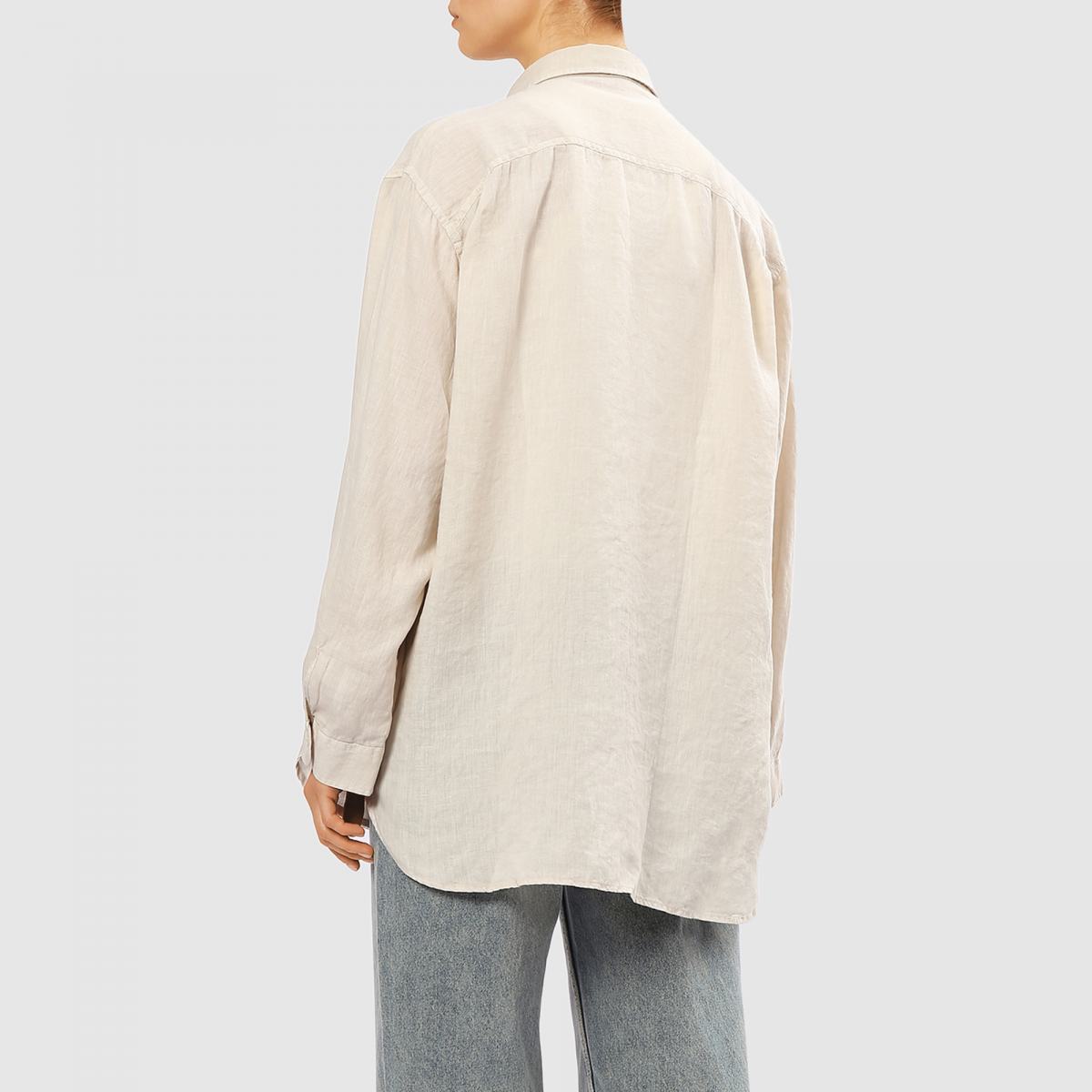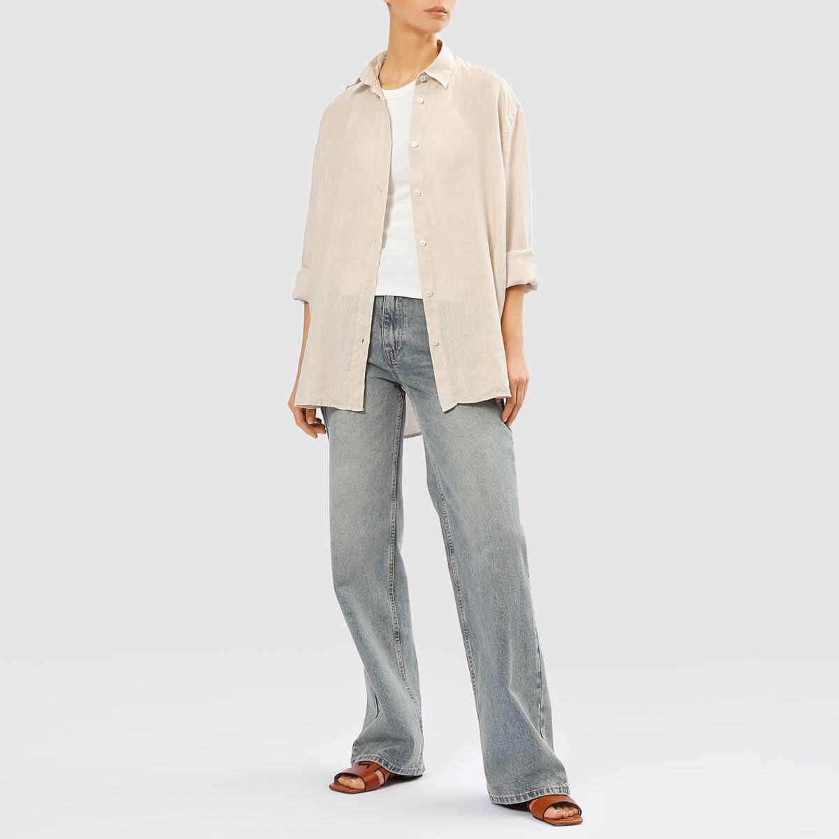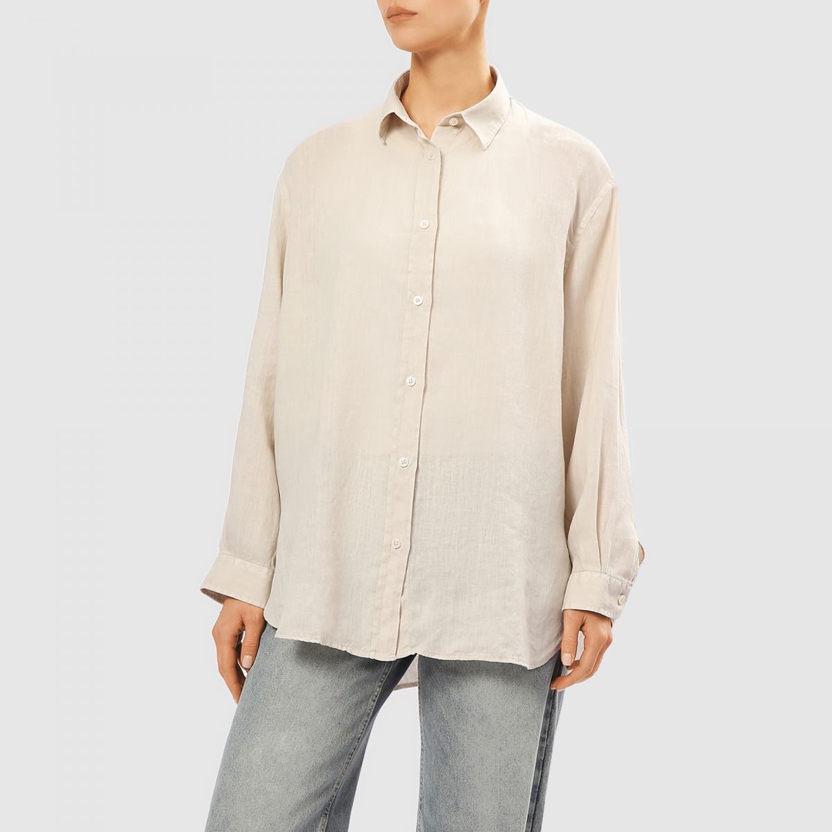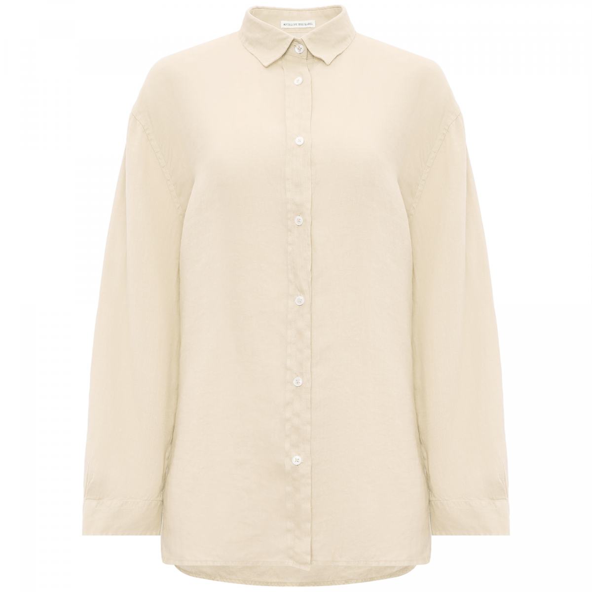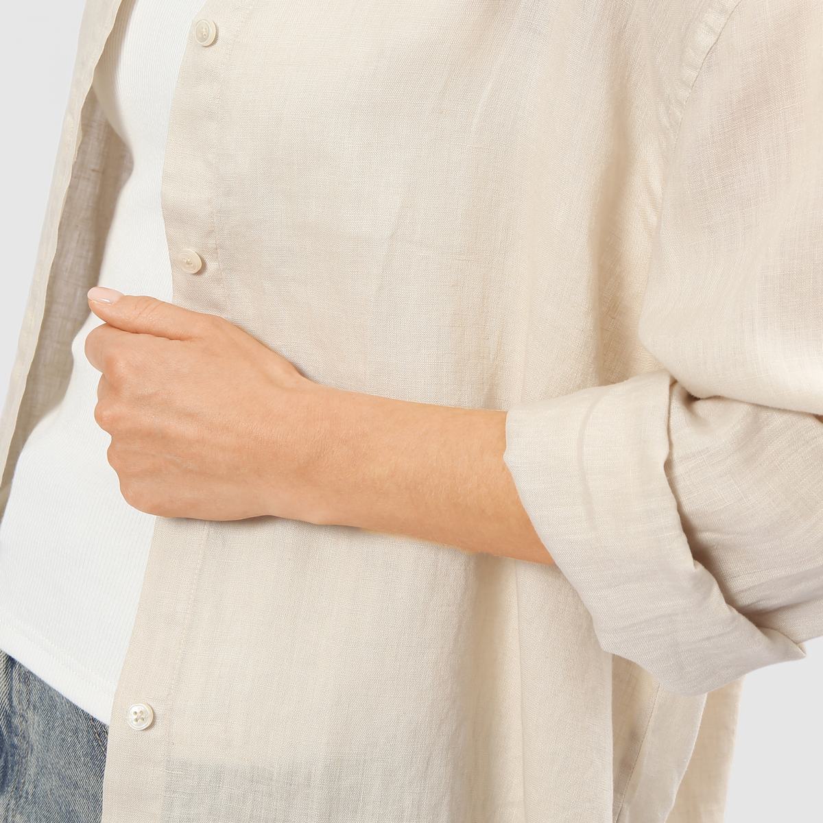 Блуза в бежевом цвете станет основой множества летних образов. Модель выполнена в свободном крое из 100% льна. Свойства ткани позволят с комфортом переносить жаркую погоду, поэтому блуза идеально подойдёт как для городских, так и для отпускных образов. Сочетайте эту модель в комплекте с шортами из коллекции бренда или с любыми другими низами из гардероба.