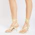 Босоножки из светло-жёлтой замши. Управляйте последними трендами с новыми босоножками из летней коллекции Stuart Weitzman. Их ремешки, обхватывающие щиколотку, созданы для того, чтобы их можно было носить по-своему — зашнуровывать вокруг лодыжки или голени. Дополнительным акцентом служат металлические кольца, на которых крепятся замшевые ремешки. Эти босоножки воплощают в себе дух высокой моды и всегда готовы к вечернему выходу в свет! Подошва и стелька выполнены из натуральной кожи, высота каблука – 85 мм.
