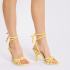 Босоножки Resort — это новое творение Le Silla, созданное для того, чтобы сопровождать вас в летние дни. Модель, в которой сочетаются тенденции и инновации, благодаря особой губчатой ткани, используемой для создания узла ремешков спереди, и ремешков, которые поднимаются и охватывают лодыжку. Все это держится на шпильке высотой 90 мм. Выберите жёлтую версию босоножек для создания ярких летних образов. Подошва выполнена из резины, стелька - из натуральной кожи.