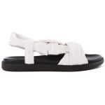 Белые босоножки идеально подойдут для прогулок, ведь благодаря мягкой форме они создают ощущение комфорта. Модель выполнена из эко кожи, на резиновой подошве. Застёжки отсутствуют, но широкий ремешок на пятке надёжно фиксирует стопу. Босоножки можно сочетать как с платьями, так и с брюками.