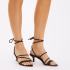Босоножки из натуральной кожи в чёрном цвете из летней коллекции бренда 3JUIN. Модель выполнена из натуральной кожи, с кожаной стелькой и подошвой. Босоножки крепятся на щиколотке шнуром из тонкой кожи. Дизайн завершает удобный каблук высотой 70 мм.