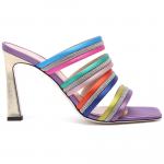 Разноцветные босоножки вдохновят на создание эффектных образов с яркими акцентами. Материал верха — текстиль с добавлением стразовой ленты, подклад и стелька выполнены из натуральной кожи, каблук также обтянут кожей в металлизированном оттенке. Босоножки выполнены без застёжек, при этом пара комфортно сидит на ноге, за счёт формы.
