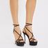 Чёрные босоножки из лакированной кожи от Le Silla. Культовые босоножки, излучающие женственность и уверенность в себе. Тонкие ремешки из лакированной кожи переплетаются, охватывают подъем и смыкаются на щиколотке. Каблук-шпилька высотой 150 мм, скрытая платформа высотой 10 мм и внешняя платформа высотой 30 мм дополняют элегантную модель. Идеальная пара для образа на особый день.