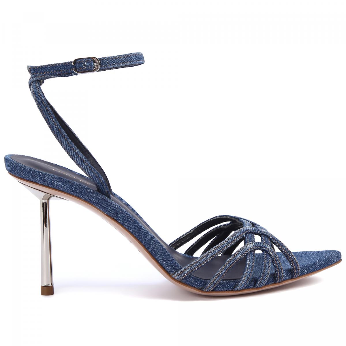 Босоножки из текстиля в цвете деним от Le Silla. Текстильная версия подойдет для тех, кто ценит современные тенденции в моде. Эта пара выделяется декоративным плетением верха и регулируемым ремешком на щиколотке. Версия на каблуке-шпильке высотой 90 мм представляет собой идеальный компромисс, позволяющий стильно дополнить как вечерний, так и повседневный образ.