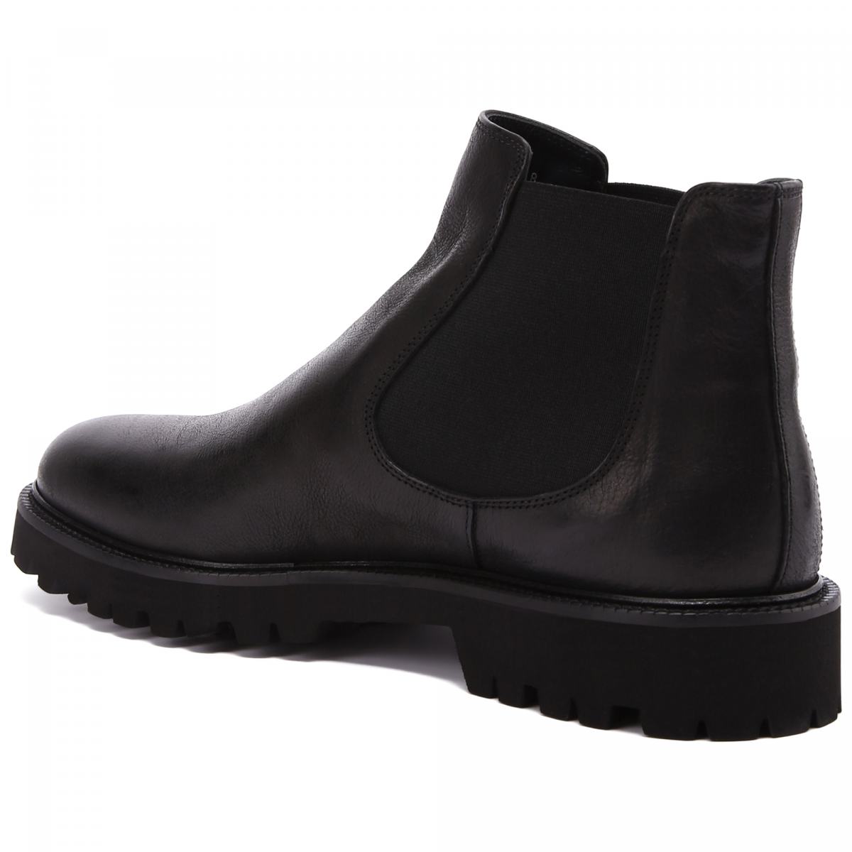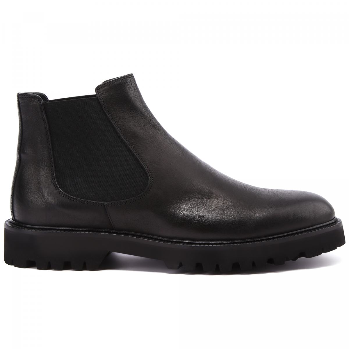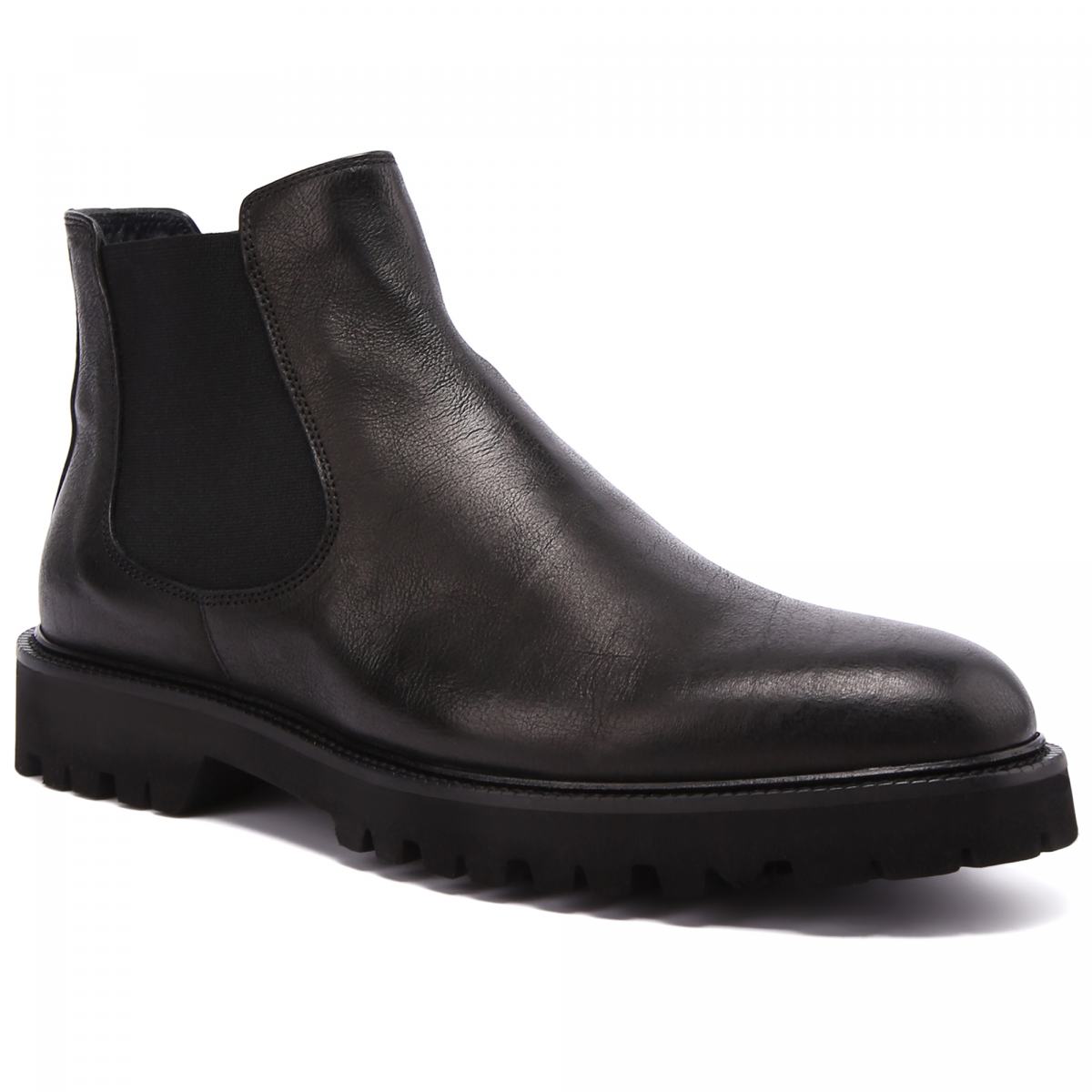 Ботинки из натуральной кожи от Aldo Brue. Пара из новой зимней коллекции бренда прекрасно подойдёт к повседневному стилю благодаря универсальному дизайну и классической чёрной коже. По бокам расположены эластичные вставки из текстильной ткани, помогающие надевать и снимать ботинки. Высокая резиновая подошва с сезонным протектором обеспечивает идеальное сцепление с любой поверхностью. Подкладка и стелька утеплены натуральной шерстью.