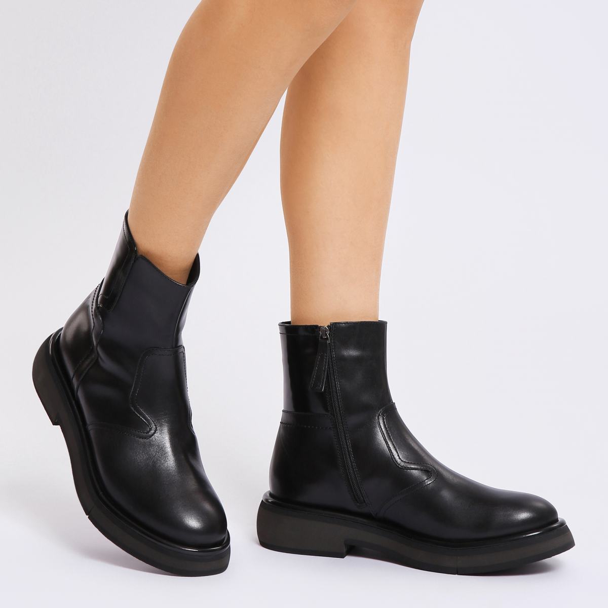 Ботинки в чёрном цвете из натуральной кожи от Fabi. Практичная модель с базовым дизайном, которая подойдёт к любому образу. Пара выполнена из гладкой чёрной кожи с благородным полу глянцевым блеском. Резиновая подошва с небольшим каблуком дарит комфорт в каждом шаге. Сбоку расположена удобная застёжка на молнию. Внутри тёплые подкладка и стелька из натурального меха.