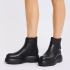 Ботинки из натуральной чёрной кожи от AGL на высокой объёмной подошве из коллекции осень-зима. Подошва округлой формы на самом деле очень лёгкая и даёт некоторую высоту без ущерба для комфорта. Сзади функциональная застёжка на молнию. Утеплённая модель с меховой подкладкой и стелькой.