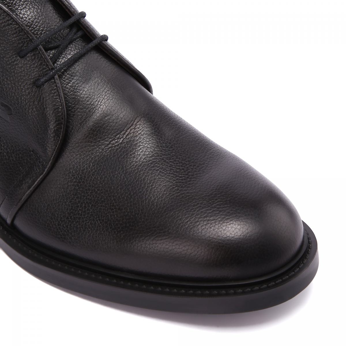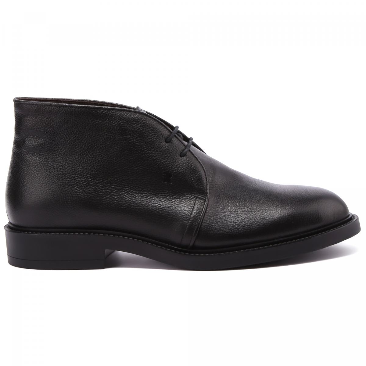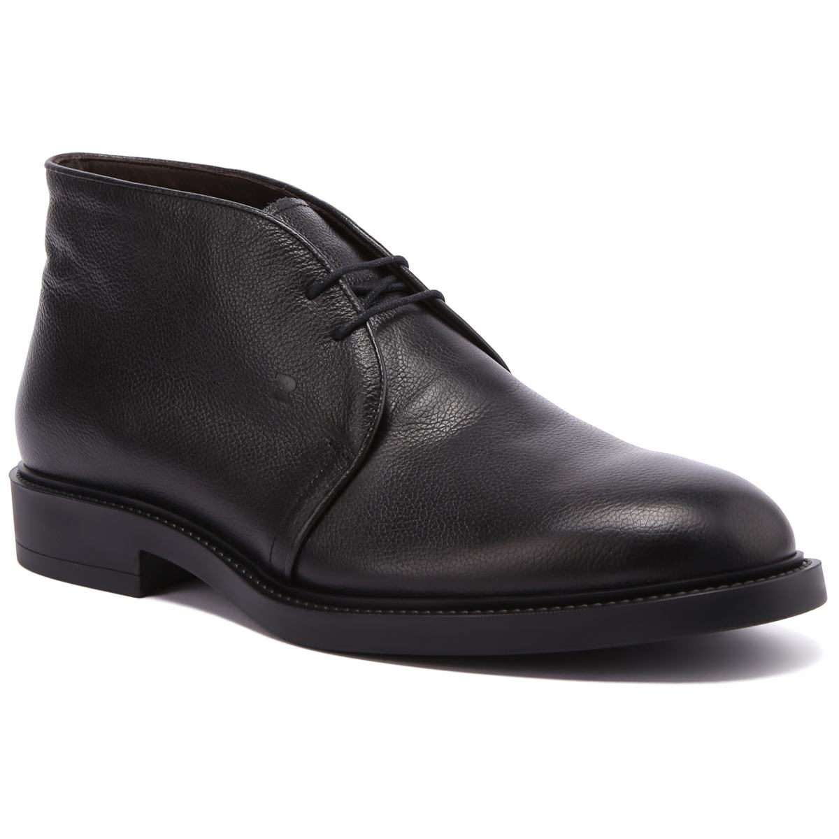 Ботинки из натуральной кожи от Fratelli Rossetti One. Пара в базовом дизайне, которая подойдёт как к деловым, так и к повседневным образам. Ботинки выполнены из гладкой кожи чёрного цвета, со шнуровкой в цвет. Высокая подошва выполнена из резины. Внутри тёплые подкладка и стелька из натурального меха.