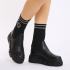 Черные ботинки на массивной подошве разнообразят повседневные образы, за счёт фирменного принта. Модель выполнена из натуральной кожи с верхом из текстильной ткани, на резиновой подошве с рифлёным протектором. Внутри подклад и стелька также из кожи.