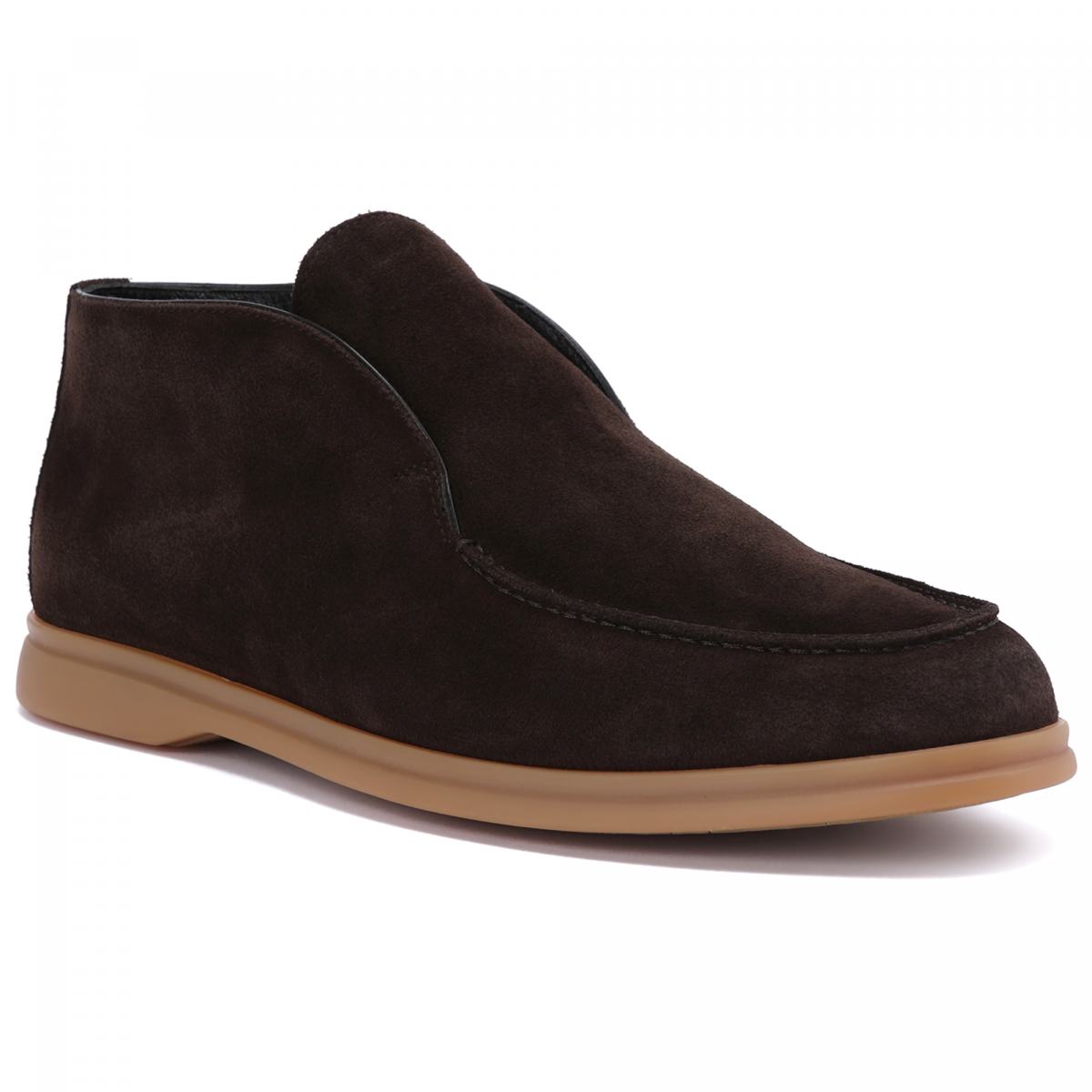 Ботинки из натуральной замши от Aldo Brue. Пара выполнена из мягкой натуральной замши в тёмно-коричневом цвете. Внутри утеплённая подкладка и стелька из шерсти, Подошва выполнена из резины. Модель из осенней коллекции бренда.