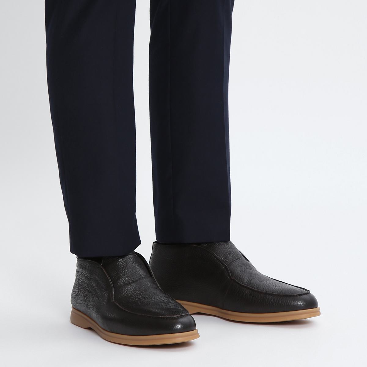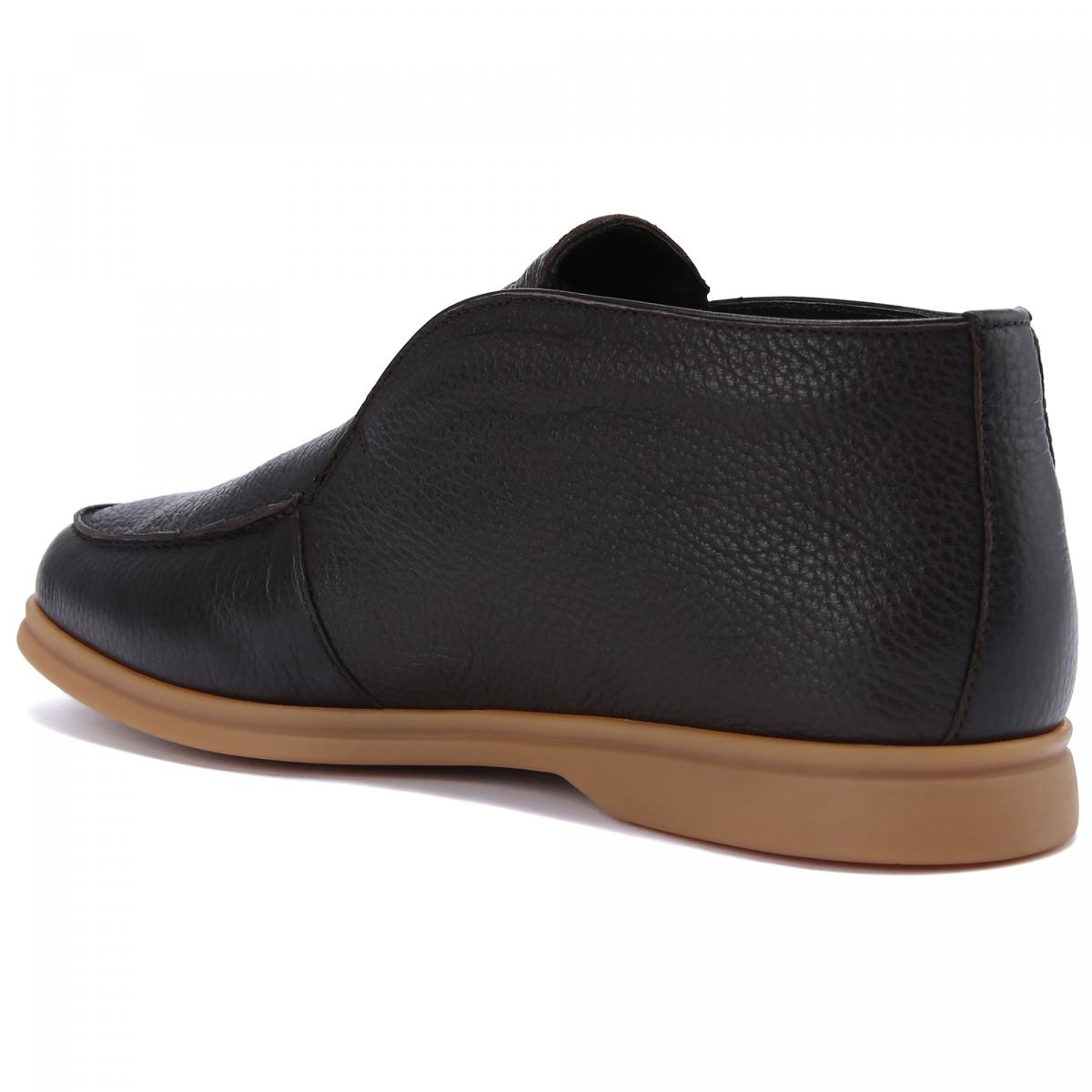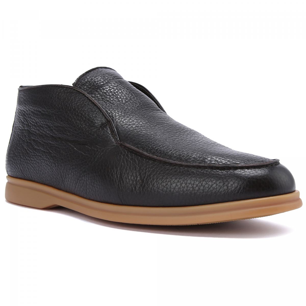 Ботинки из натуральной кожи от Aldo Brue. Пара выполнена из натуральной кожи в классическом тёмно-коричневом цвете. Внутри утеплённая подкладка и стелька из натурального меха, контрастная белая подошва выполнена из резины. Модель из зимней коллекции бренда.