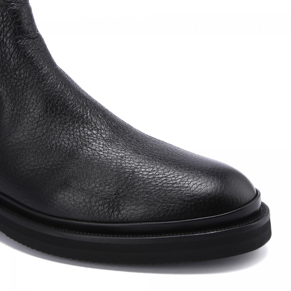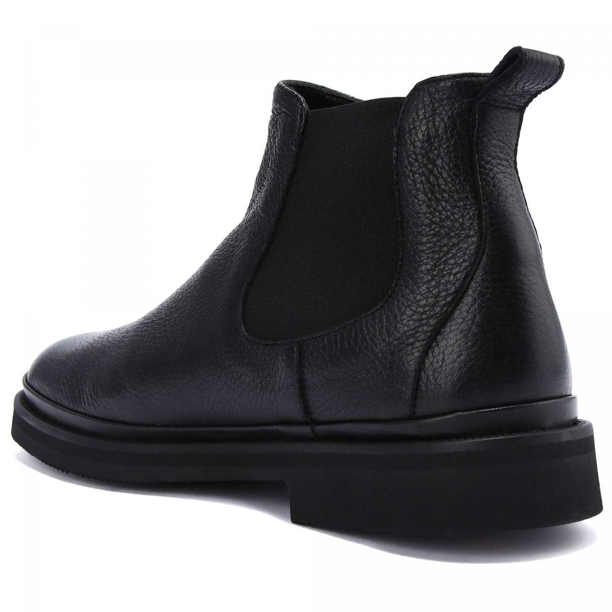Ботинки из натуральной кожи от Aldo Brue. Пара из новой зимней коллекции бренда прекрасно подойдёт к повседневному стилю благодаря универсальному дизайну и классической чёрной коже. По бокам расположены эластичные вставки из текстильной ткани, помогающие надевать и снимать ботинки. Резиновая подошва с небольшим каблуком обеспечит комфорт в каждом шаге. Подкладка и стелька утеплены натуральной шерстью.