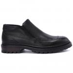 Ботинки из чёрной кожи от Aldo Brue. Удобные и тёплые ботинки созданы специально для долгих прогулок в холодные дни. Верх выполнен из натуральной кожи, с эластичными вставками спереди. Внутри подкладка и стелька из шерсти, обеспечивающие тепло и комфорт. Дизайн завершает комфортная подошва из резины, с ребристым нескользящим протектором.
