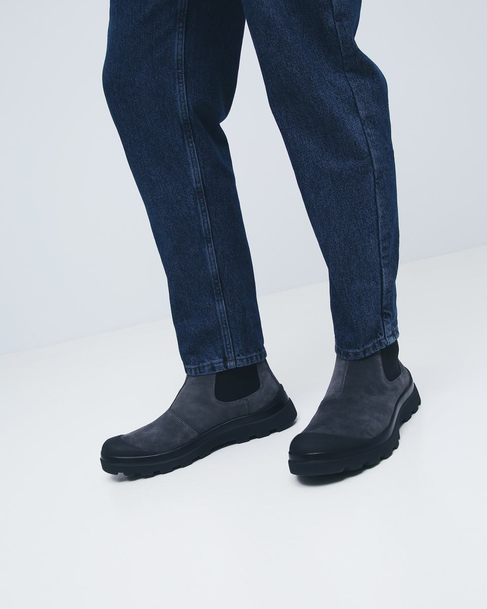 Ботинки из натуральной замши в сером цвете от Panchic. Линия P03 предлагает отличную защиту с крутым техно-видом, идеально подходящим для путешествующих по миру. Пара выполнена из натуральной замшевой кожи, с черными эластичными боковыми вставками и подкладкой из кожи. Резиновая подошва с объёмным протектором завершает дизайн пары, а прорезиненные вставки на пятке и носке надёжно защищают ноги от влаги. Внутри тёплая стелька из натурального меха.