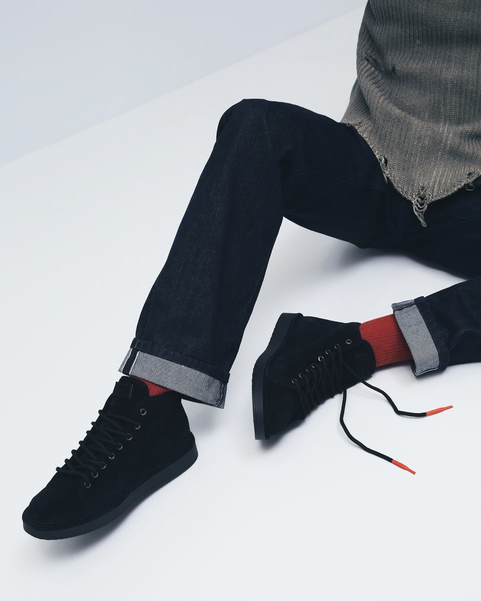 Высокие кеды с верхом из устойчивой замши черного цвета, подкладкой из меха и текстильной шнуровкой в тон. Линия P01 Original предлагает чистые линии в идеальном балансе между дизайном и комфортом. Стелька выполнена из натуральной кожи, а гибкая подошва - из резины.