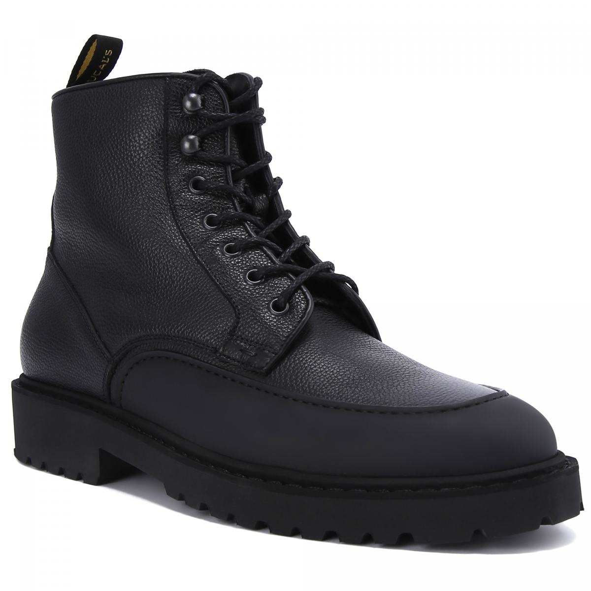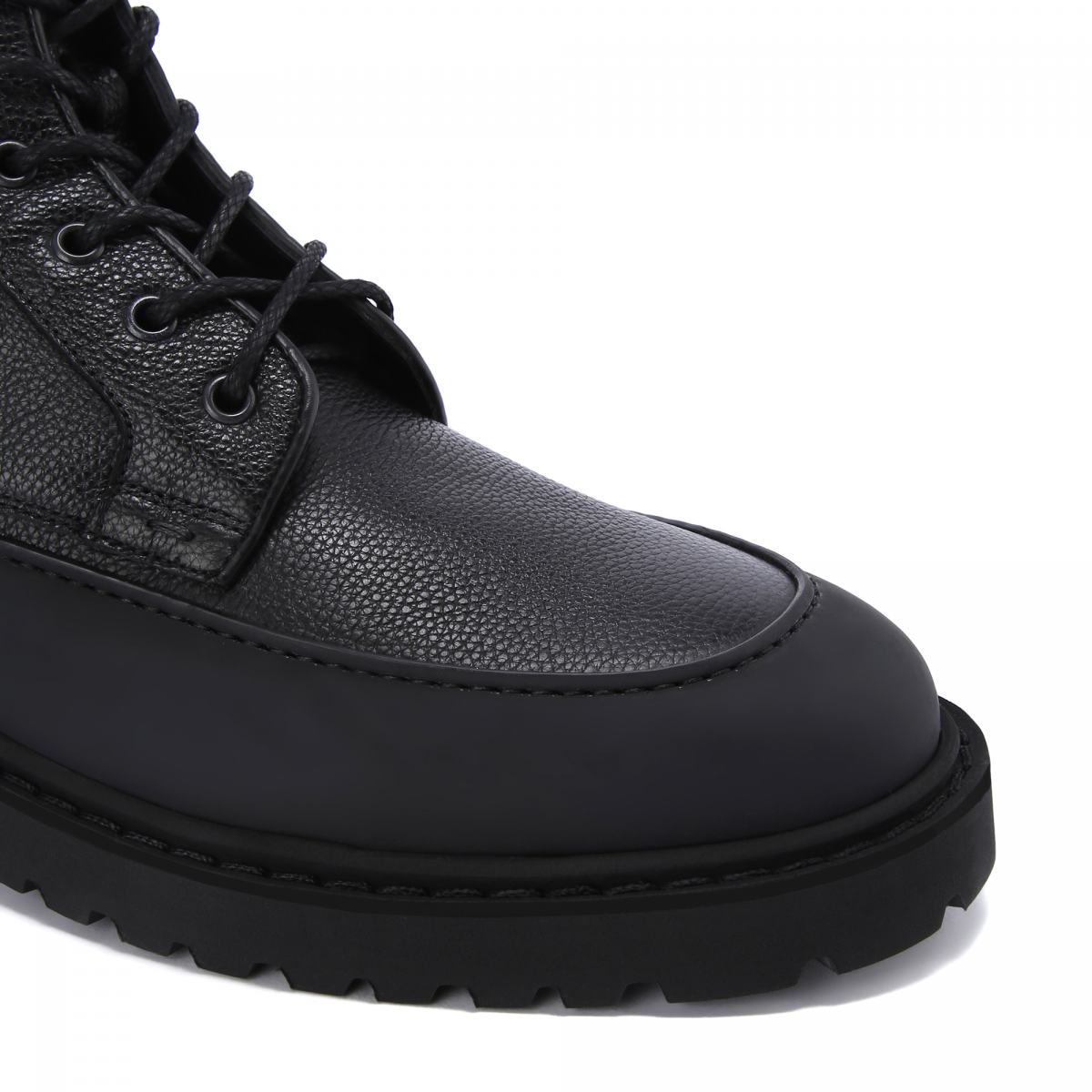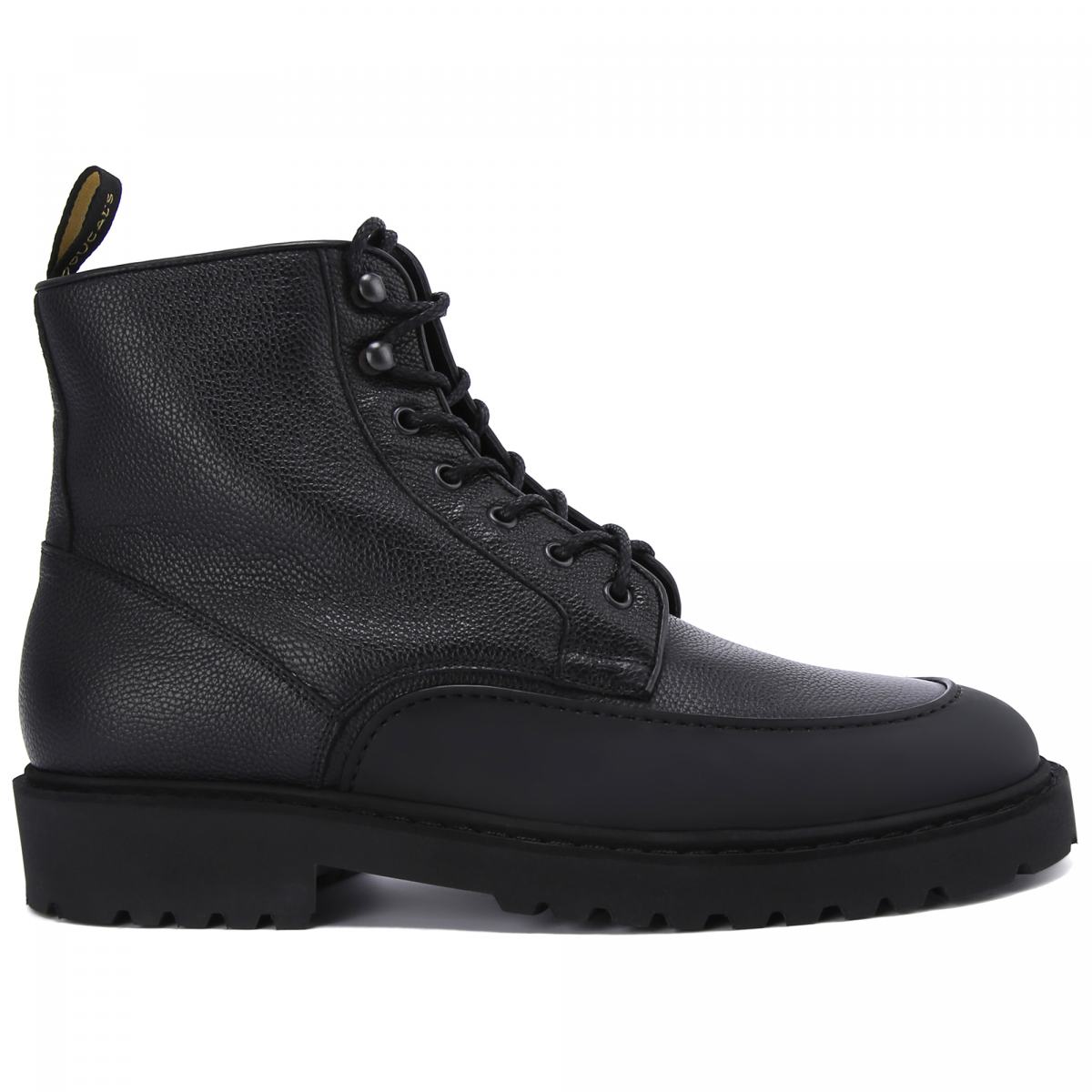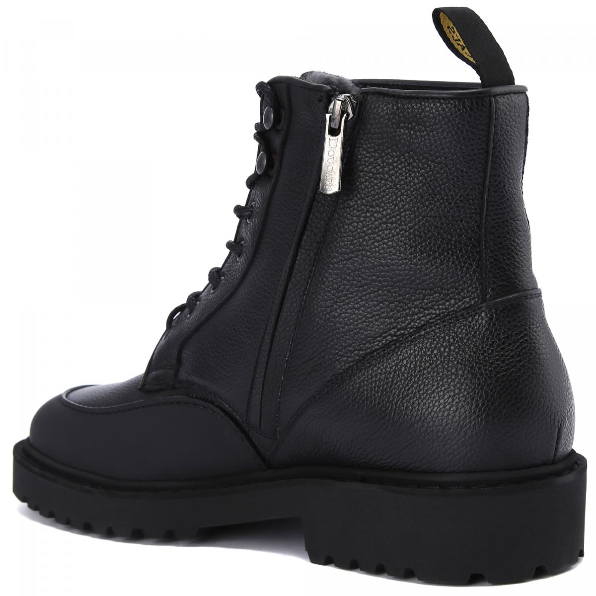 Ботинки из натуральной чёрной кожи от Doucal’s. Очень комфортные ботинки дополнят как деловые, так и повседневные осенние образы. Верх выполнен из натуральной зернистой кожи, внутри подкладка и стелька из натурального меха. Сбоку расположена застёжка на молнию. Высокая подошва в чёрном цвете выполнена из резины. Дизайн пары завершает текстильная шнуровка в цвет.
