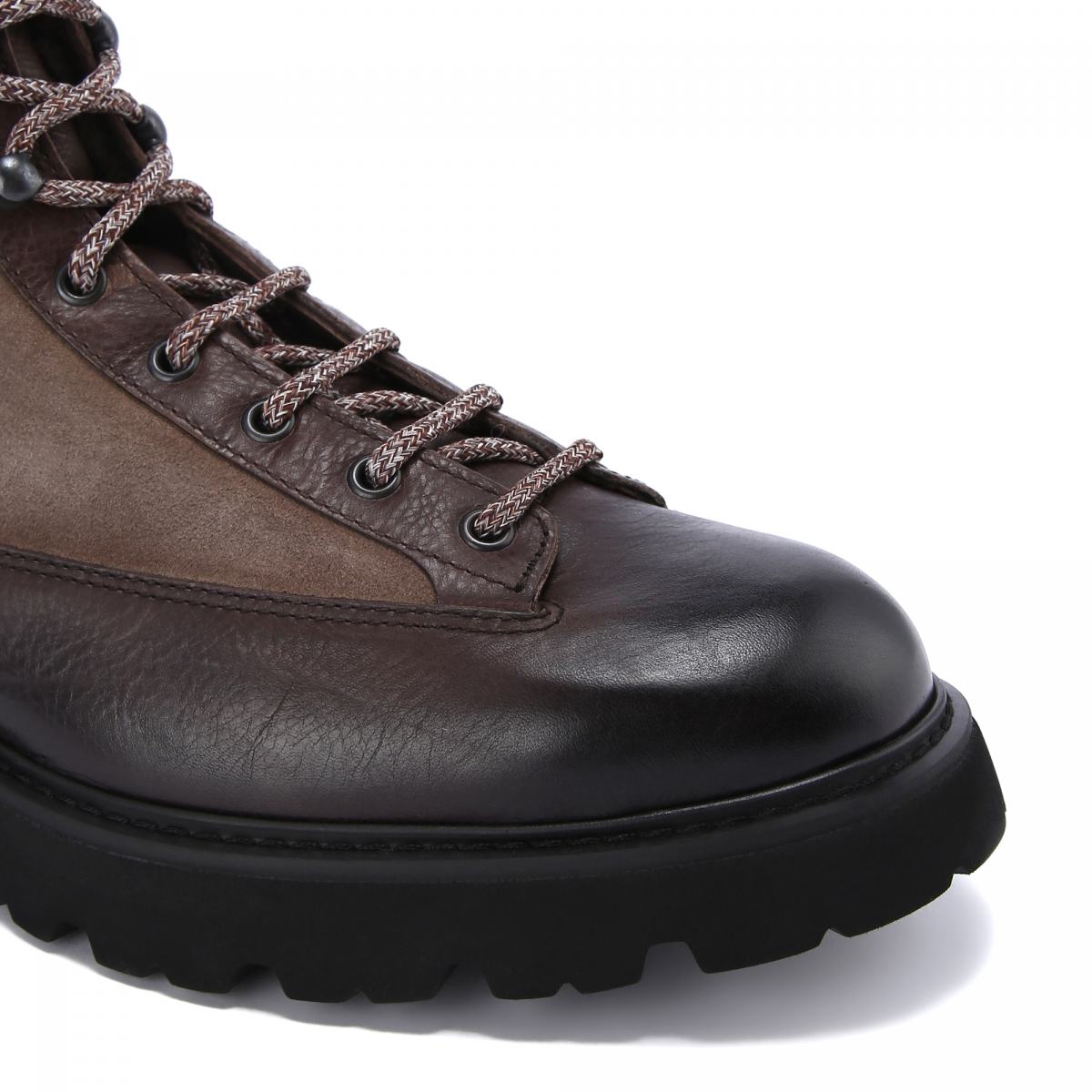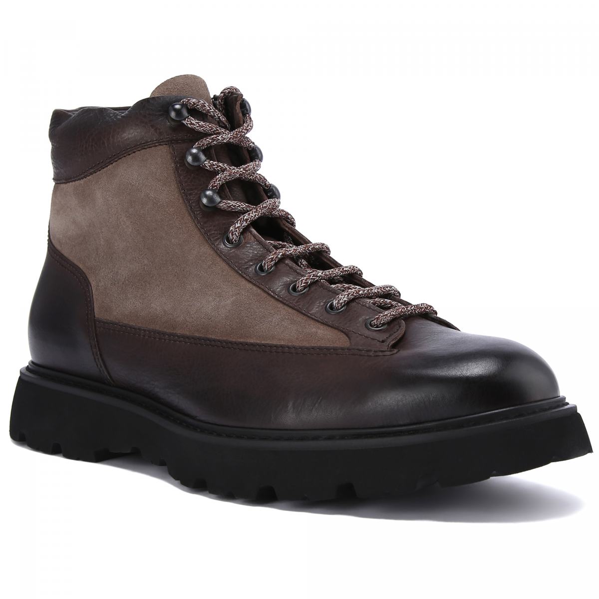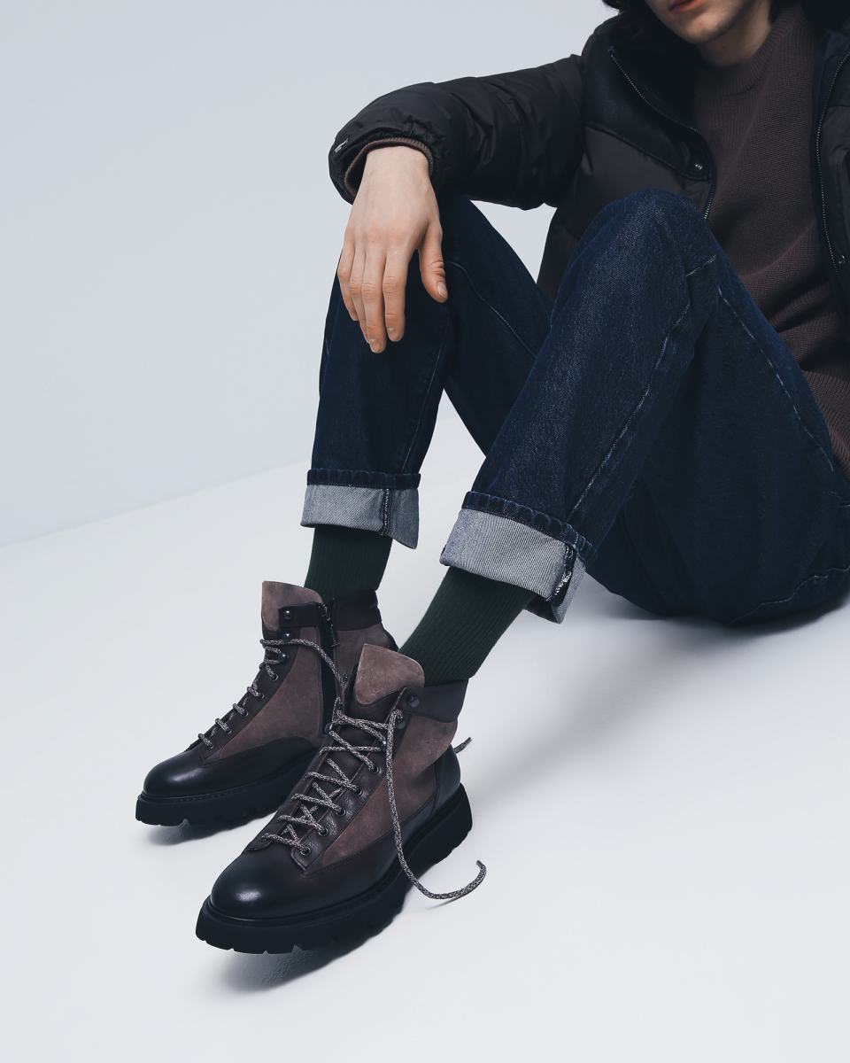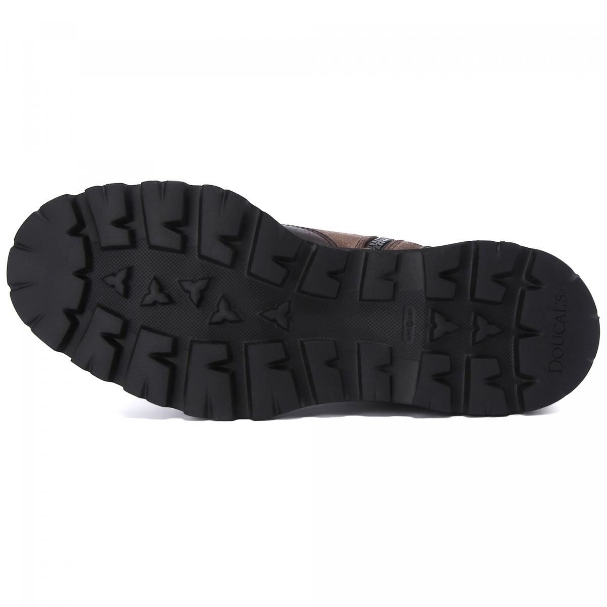 Мужские ботинки до щиколотки от Doucal’s. Модель в оттенках коричневого выполнена из кожи и замши. Закругленная форма, на внутренней стороне застежка-молния. Конструкция AGO гарантирует прочность и мягкость обуви, которая становится еще более легкой за счет новой подошвы из резины AVE. Внутри утепленные подкладка и стелька из натурального меха.