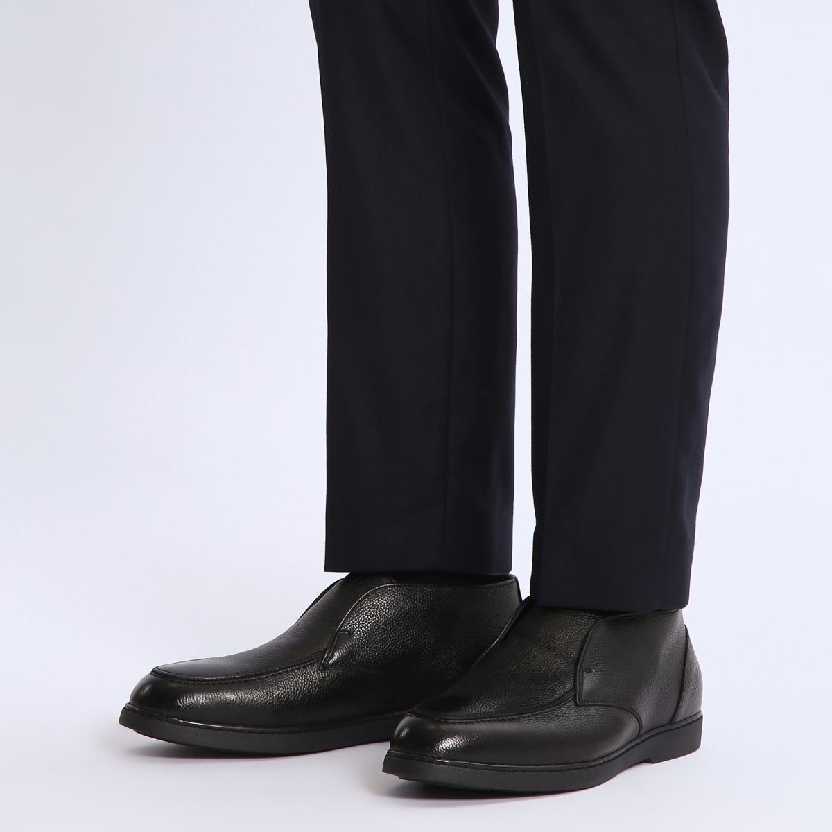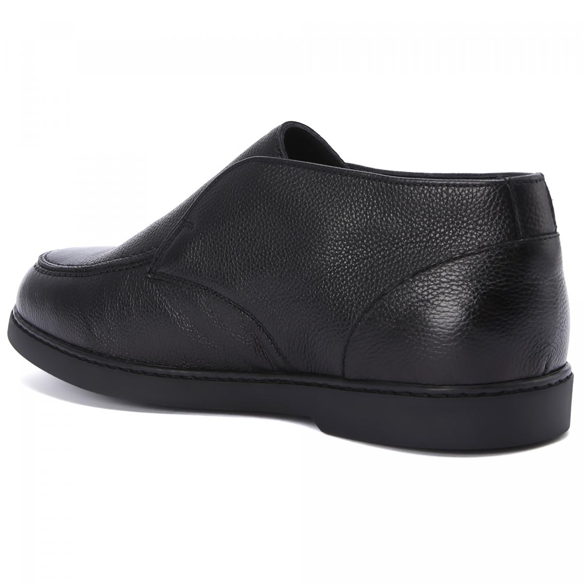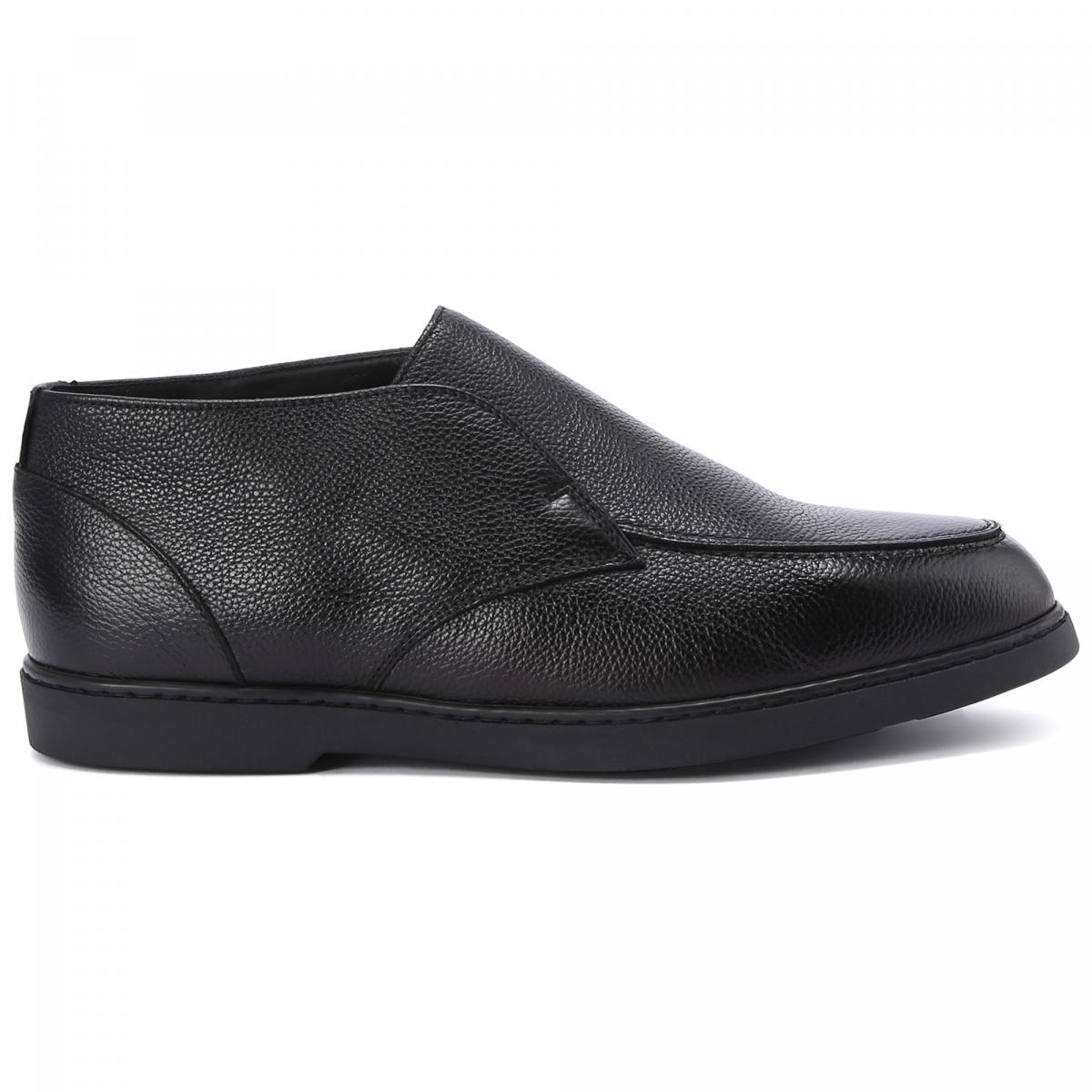 Ботинки из натуральной чёрной кожи от Doucal’s. Очень комфортные ботинки дополнят как деловые, так и повседневные осенние образы. Верх выполнен из натуральной зернистой кожи, внутри тёплая подкладка и стелька из натурального меха. Гибкая подошва в чёрном цвете выполнена из резины.