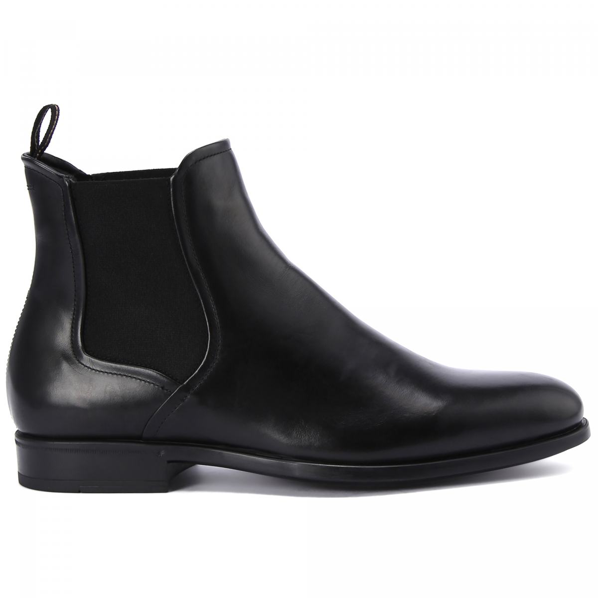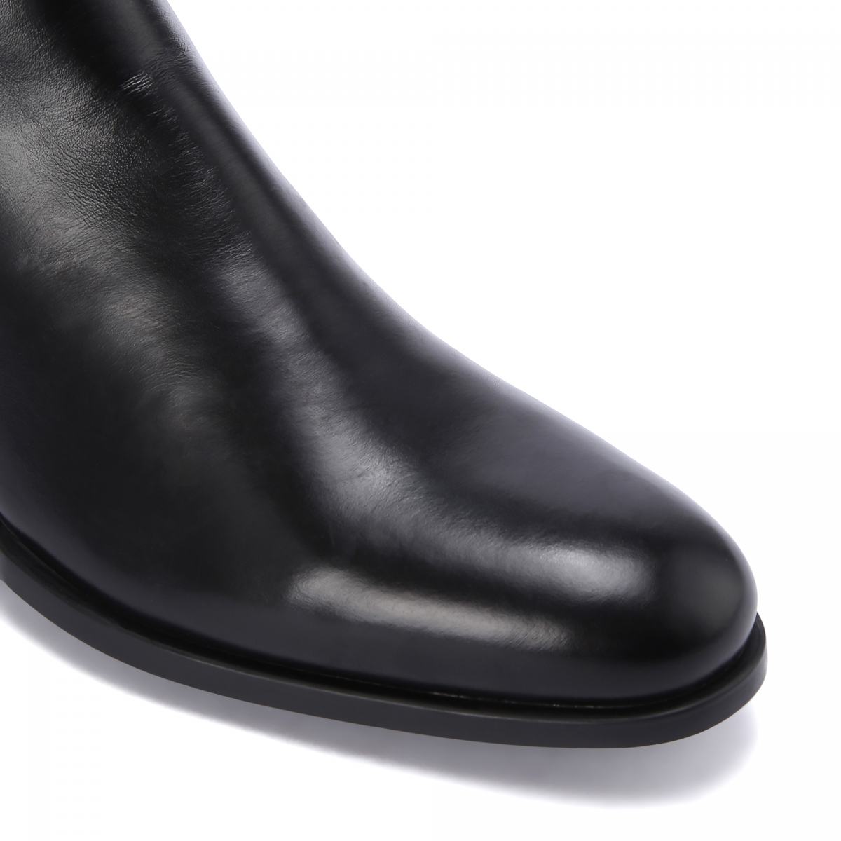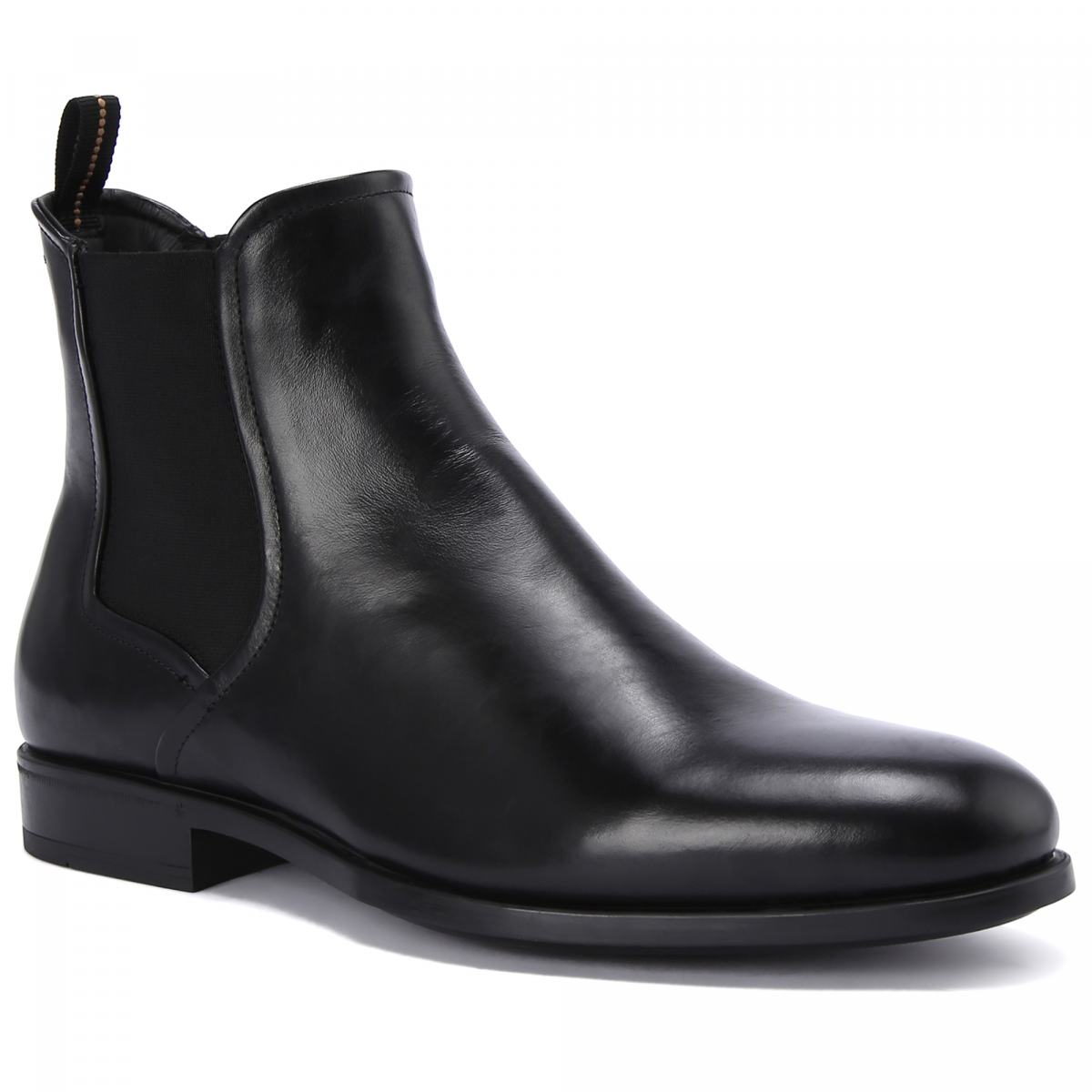 Ботинки из чёрной матовой кожи от Fabi помогут создать стильные образы. Модель выполнена из натуральной полу глянцевой кожи, на гибкой резиновой подошве с небольшим каблуком. Эластичные вставки по бокам помогают удобно снимать и надевать пару. Подкладка и стелька утеплённые, из натурального меха, а значит пара подойдёт для зимнего сезона.