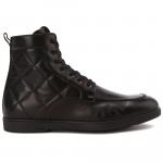 Чёрные ботинки с простёжкой легко вписать в деловые и повседневные образы. Модель выполнена из натуральной кожи, на резиновой подошве. Внутри пара утеплена подкладом и стелькой из натурального меха. Ботинки застёгиваются на молнию и дополнены петлёй на пятке для комфортного обувания. Сочетайте пару с брюками, темными джинсами.