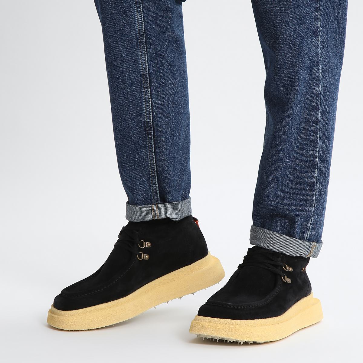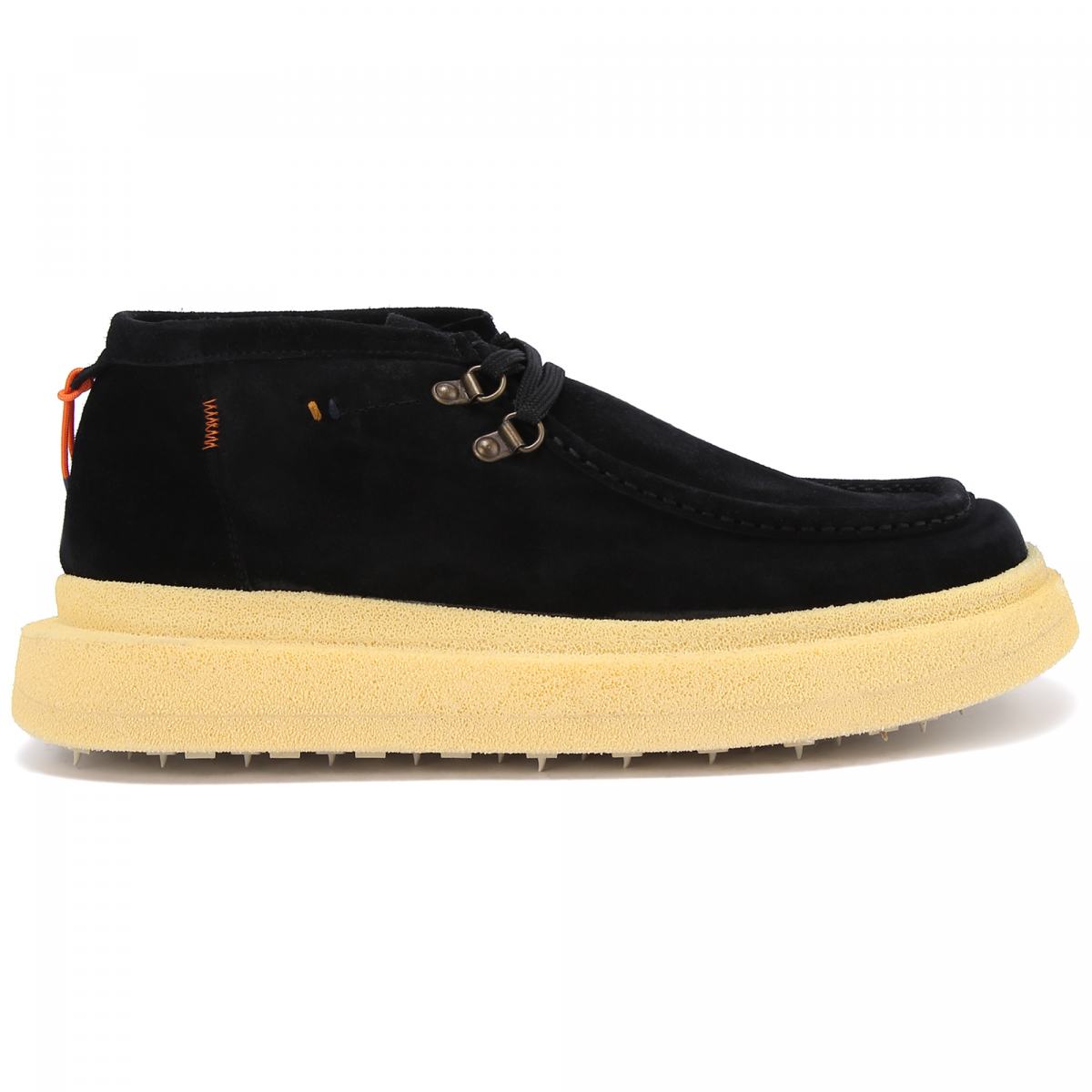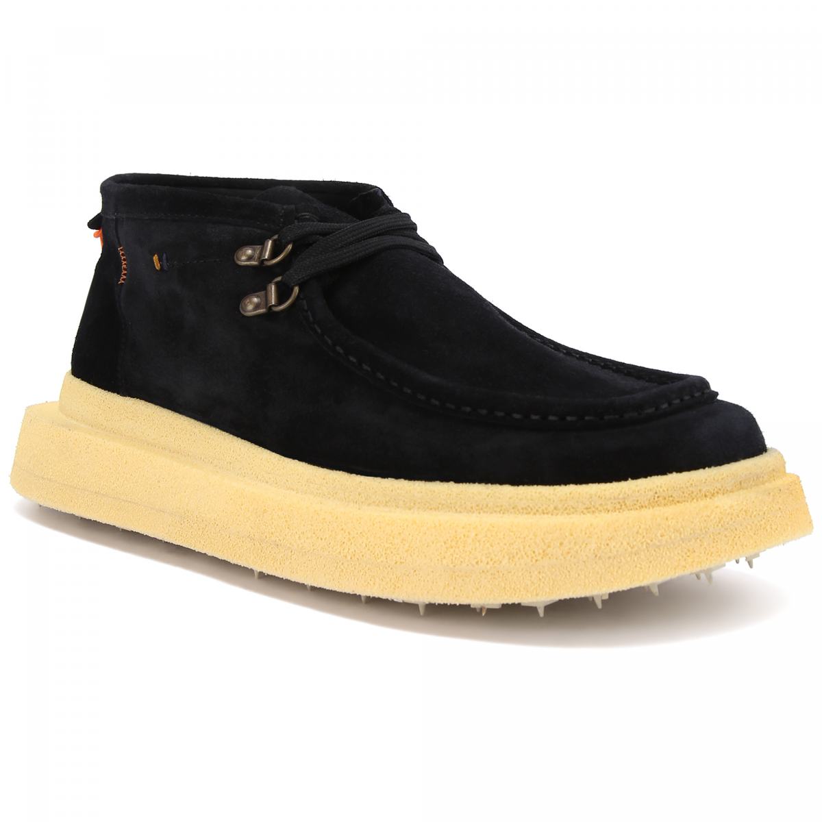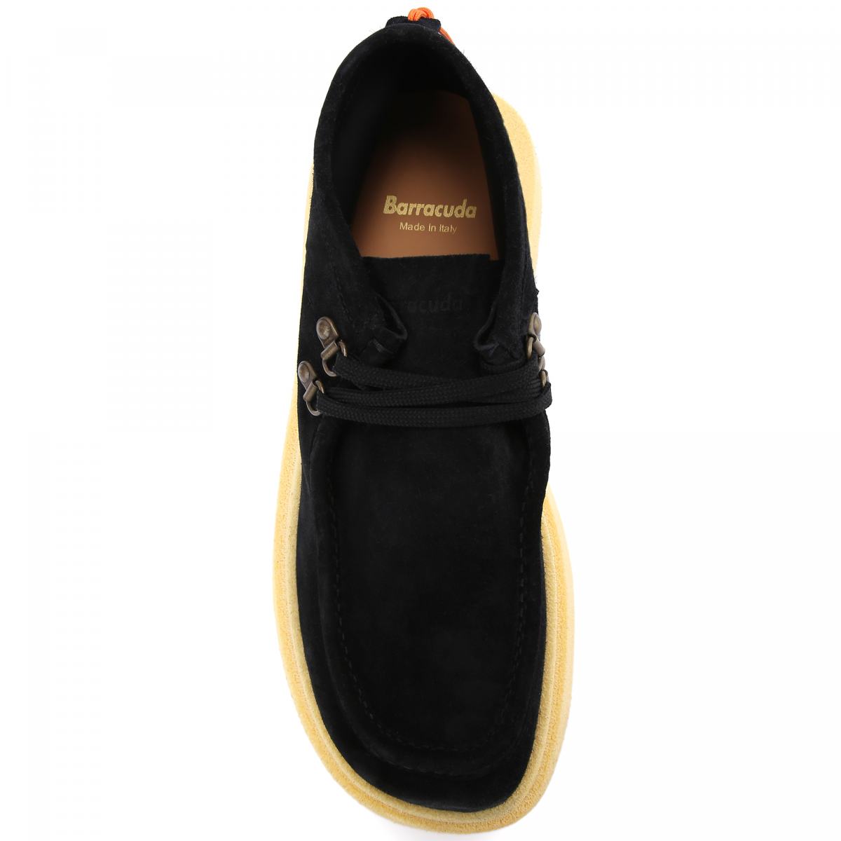 Ботинки из чёрной замши от Barracuda. Ботинки из осенней коллекции выполнены из натуральной замшевой кожи чёрного цвета. Эти ботинки идеально подойдут к городским образам в стиле casual. Высокая подошва выполнена из резины, подкладка и стелька - из натуральной кожи. Дизайн завершает текстильная шнуровка с металлическими люверсами.