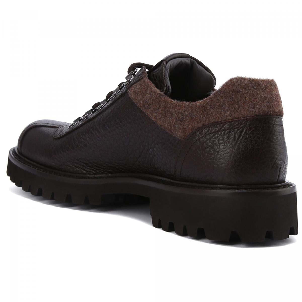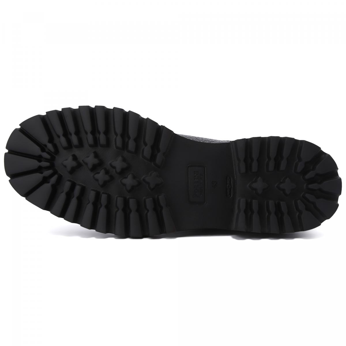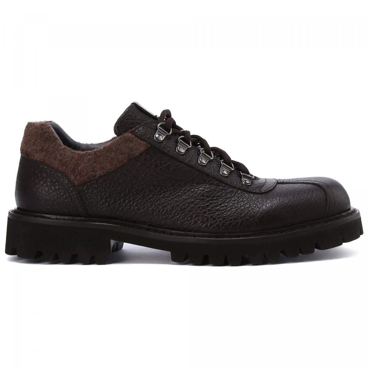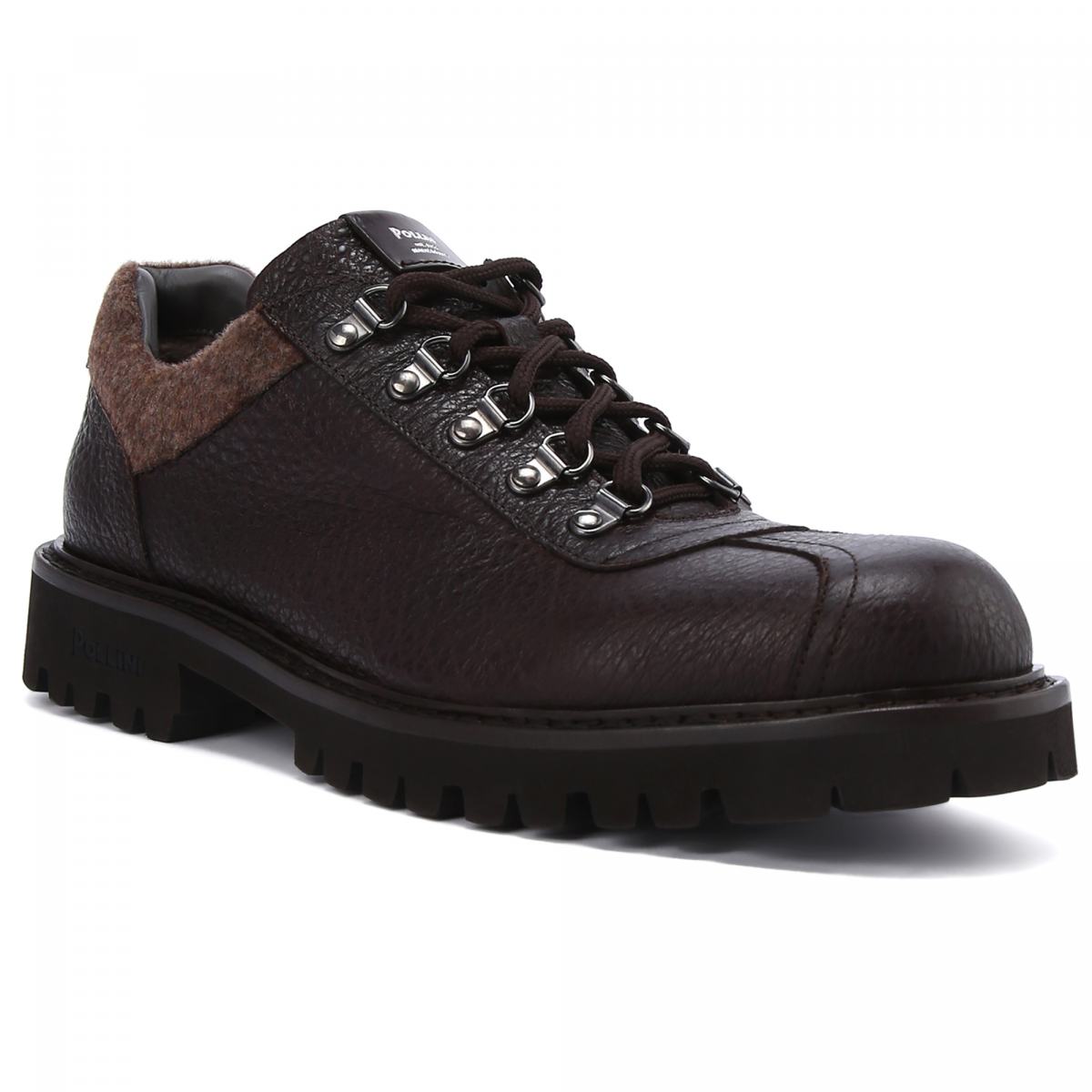 Темно-коричневые ботинки от Pollini станут частью базового гардероба. Модель выполнена крупнозернистой натуральной кожи с шерстяной вставкой, на резиновой подошве. Внутри подклад и стелька из натурального меха. Фактура кожи скроет заломы и следы носки. Ботинки легко сочетать и с денимом, и с другими тканями.