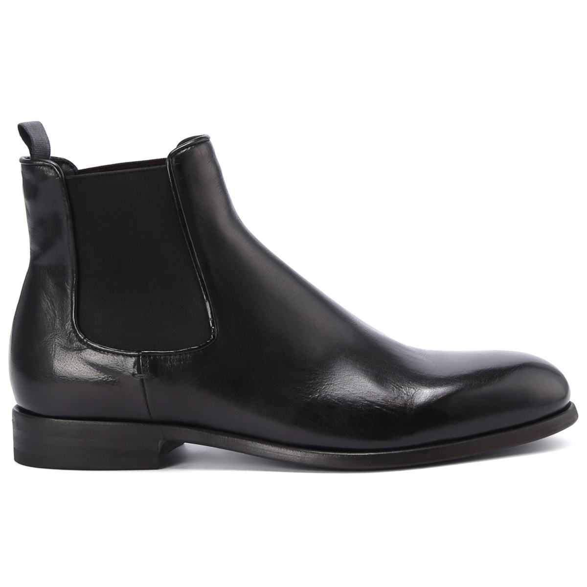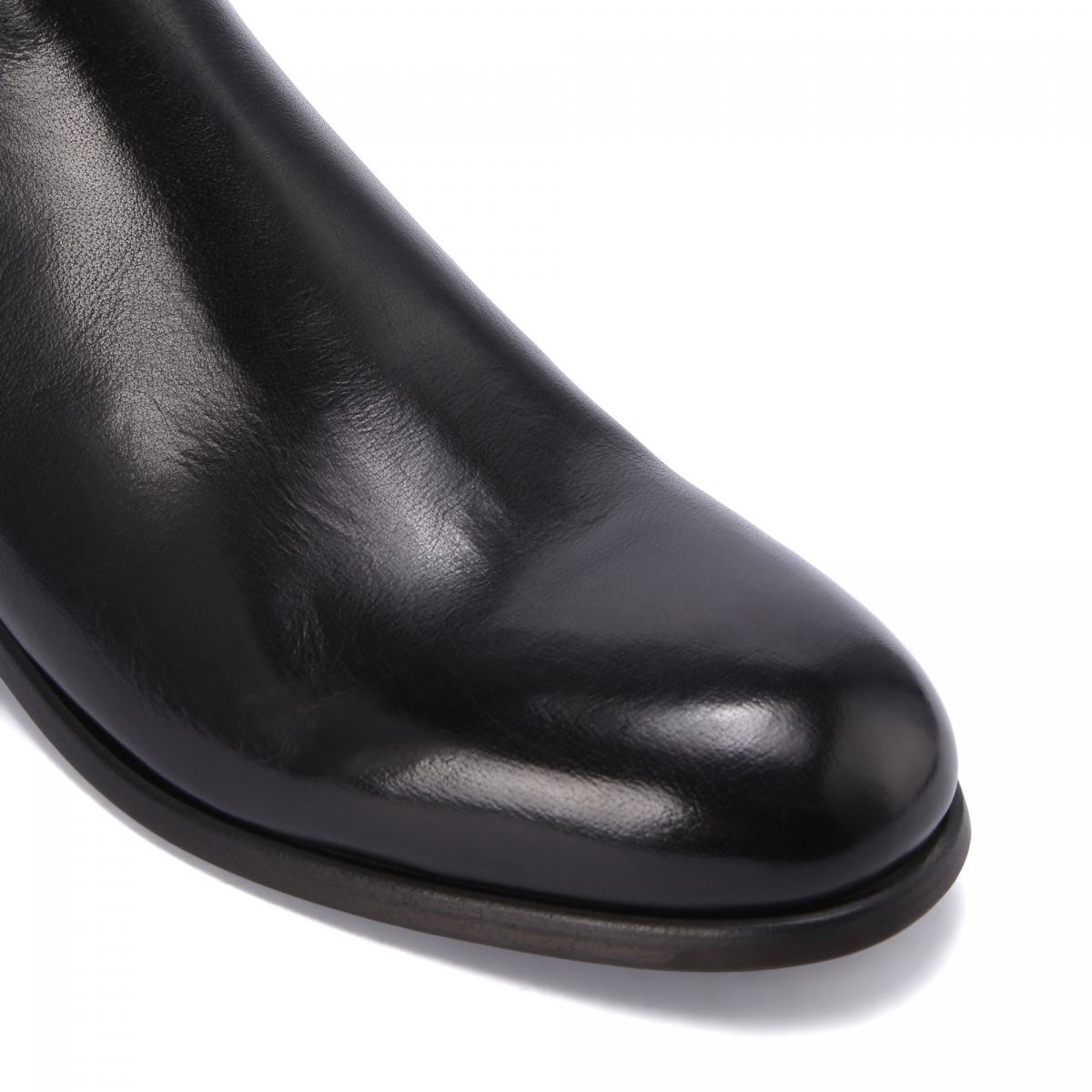 Высокие ботинки из чёрной кожи из осенне-зимней коллекции Pantanetti. Пара в базовом цвете подойдёт как к повседневным, так и к деловым образам. Верх из натуральной кожи дополняют эластичные вставки из текстильной резинки. Подкладка и стелька выполнены из натурального меха, а значит пара подойдёт для зимы. Подошва с небольшим каблуком выполнена из резины.