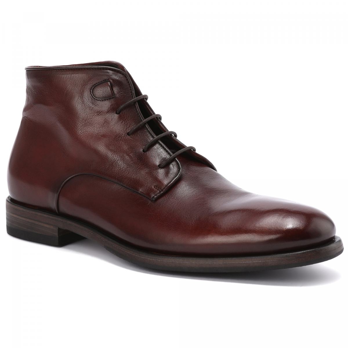 Ботинки из натуральной тёмно-коричневой кожи от Pantanetti. Практичные и стильные ботинки с верхом из гладкой кожи дополнят ваши образы на каждый день. Пара оснащена шнуровкой, практичной резиновой подошвой с небольшим каблуком и подкладкой и стелькой из натуральной кожи.