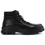 Чёрные ботинки из кожи от Fabi. Вдохновленные походной обувью, эти ботинки сочетают в себе устойчивость к горным условиям и городской стиль. Модель из телячьей кожи премиум-класса сочетает классические детали треккинговых ботинок и инновационные элементы. Прочная резиновая подошва обеспечивает надежное сцепление даже на заснеженных дорогах. Практичная боковая молния облегчает посадку. Внутри утеплённая подкладка из натурального меха и практичная кожаная стелька.
