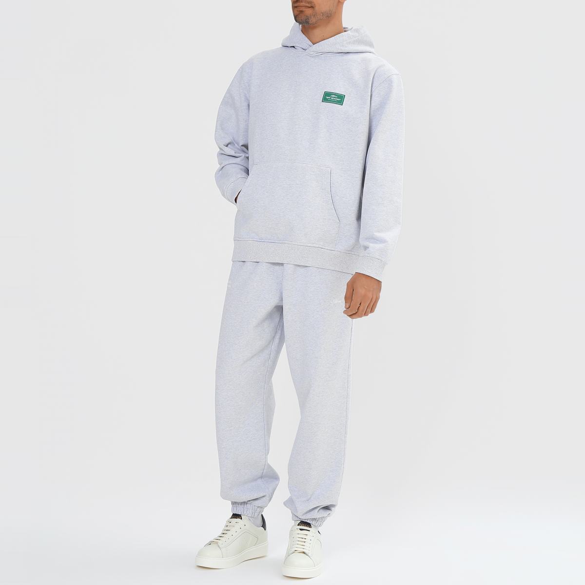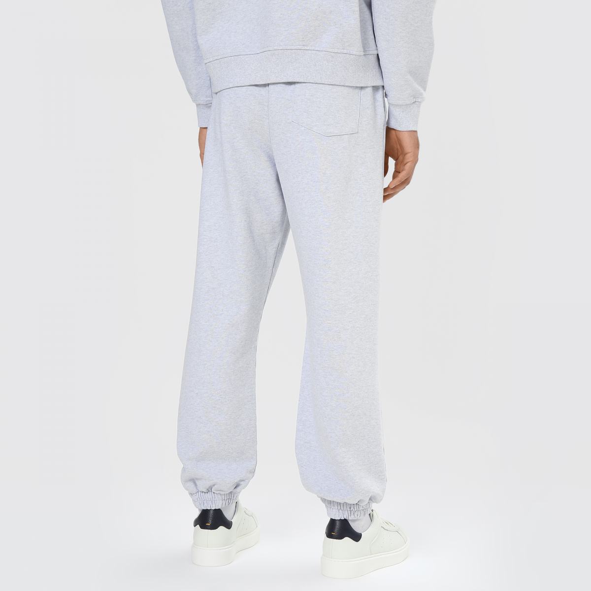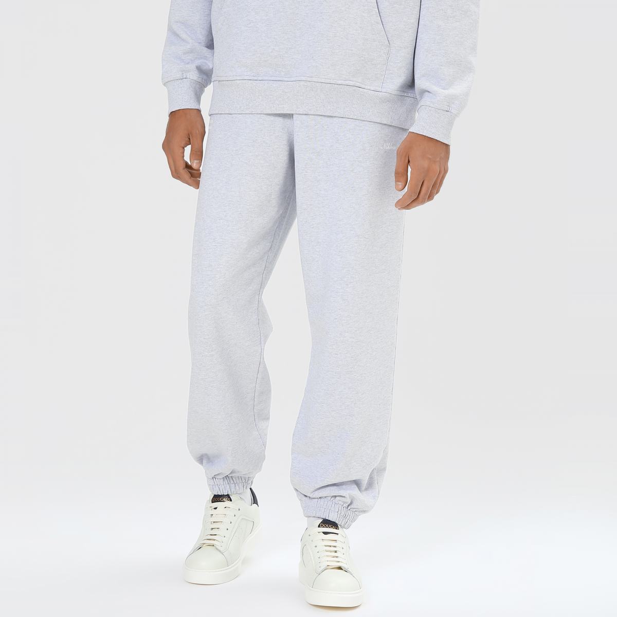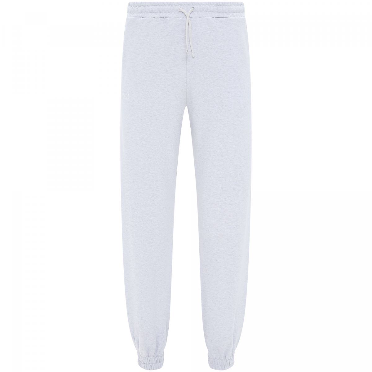 Брюки в спортивном стиле от Nikben. Светло-серые брюки выполнены из плотной ткани, в составе которой только органический хлопок. Эластичный пояс на кулиске, резинки на манжета, задний карман на молнии.