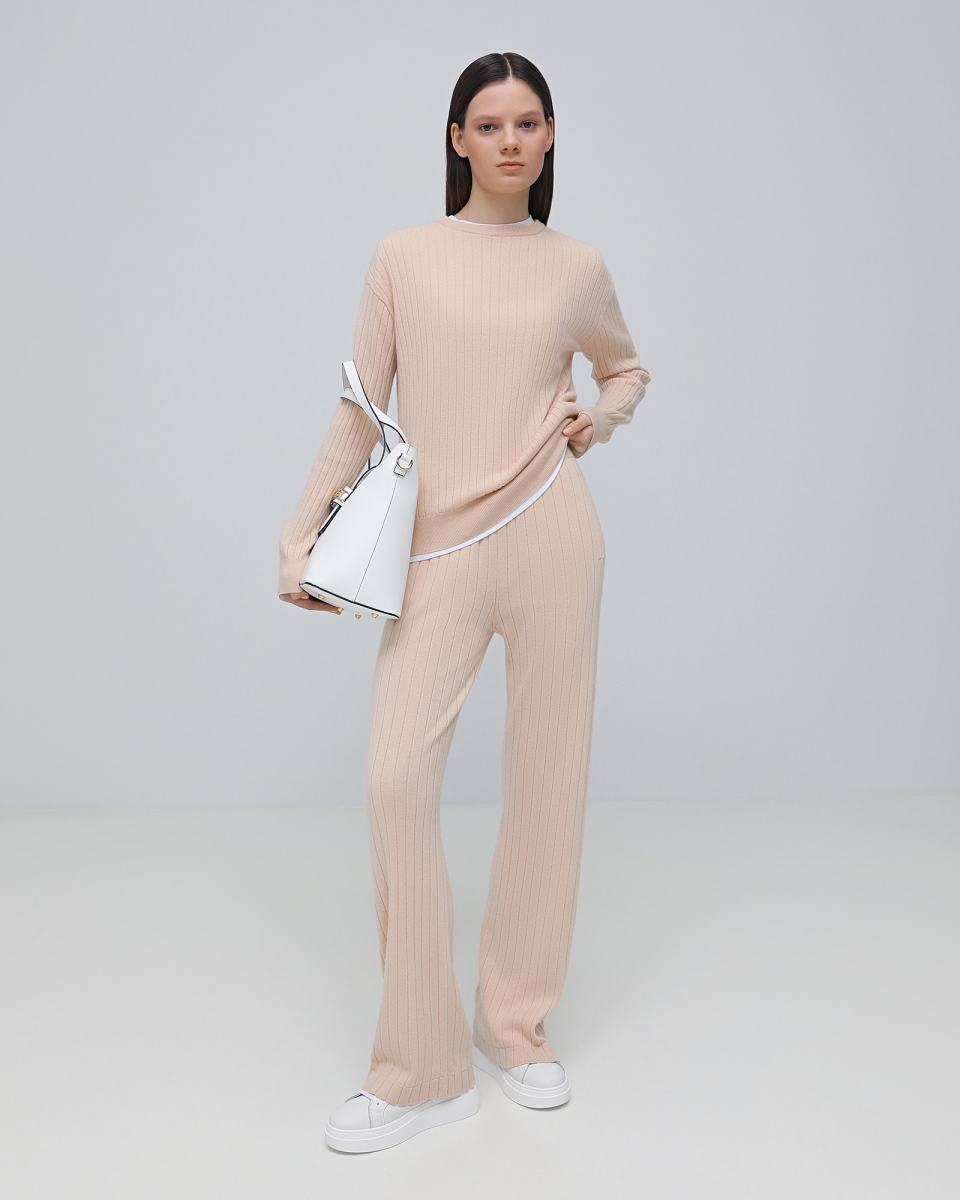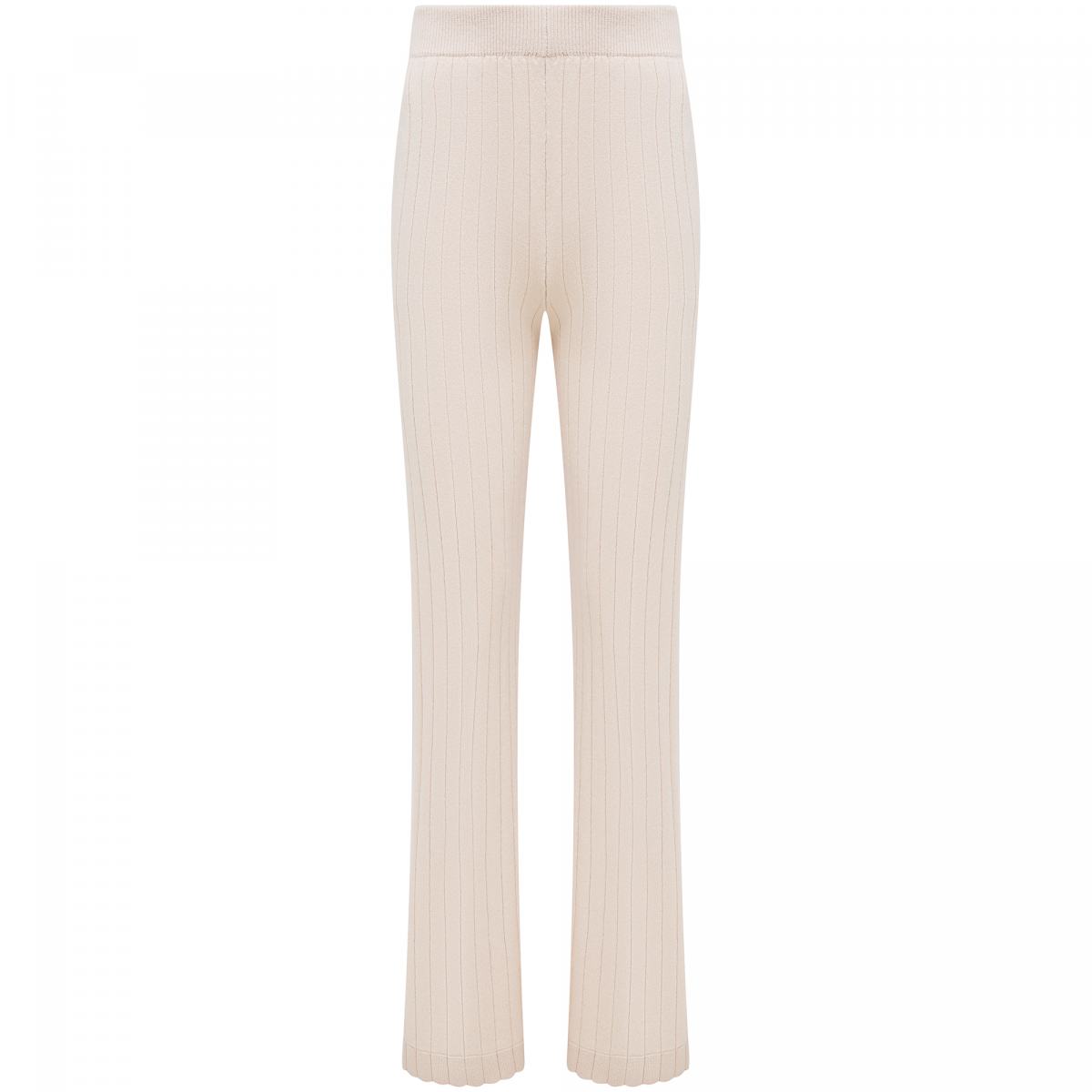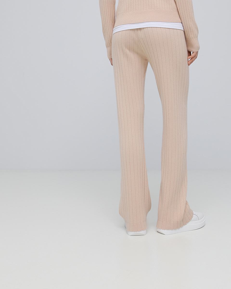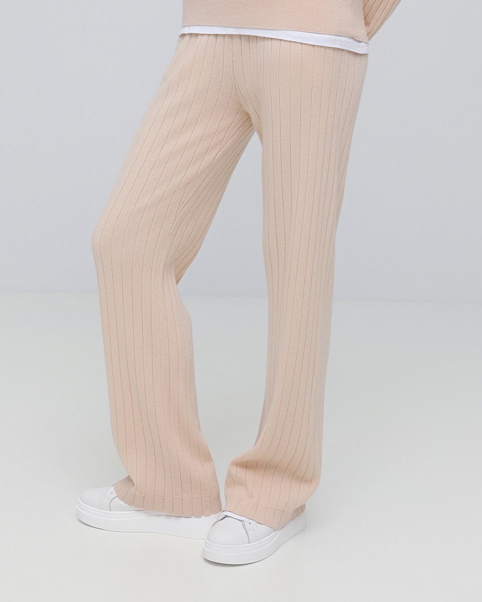 Бежевые брюки Principe di Bologna помогут в создании комфортного образа на каждый день. Модель выполнена на эластичном поясе, из трикотажа, в составе которого 70% кашемира и 30% шелка. Вертикальный рисунок вязки и прямой крой визуально вытягивает силуэт. Брюки можно носить комплектом с футболкой или джемпером из капсулы бренда или сочетать с любыми другими верхами.