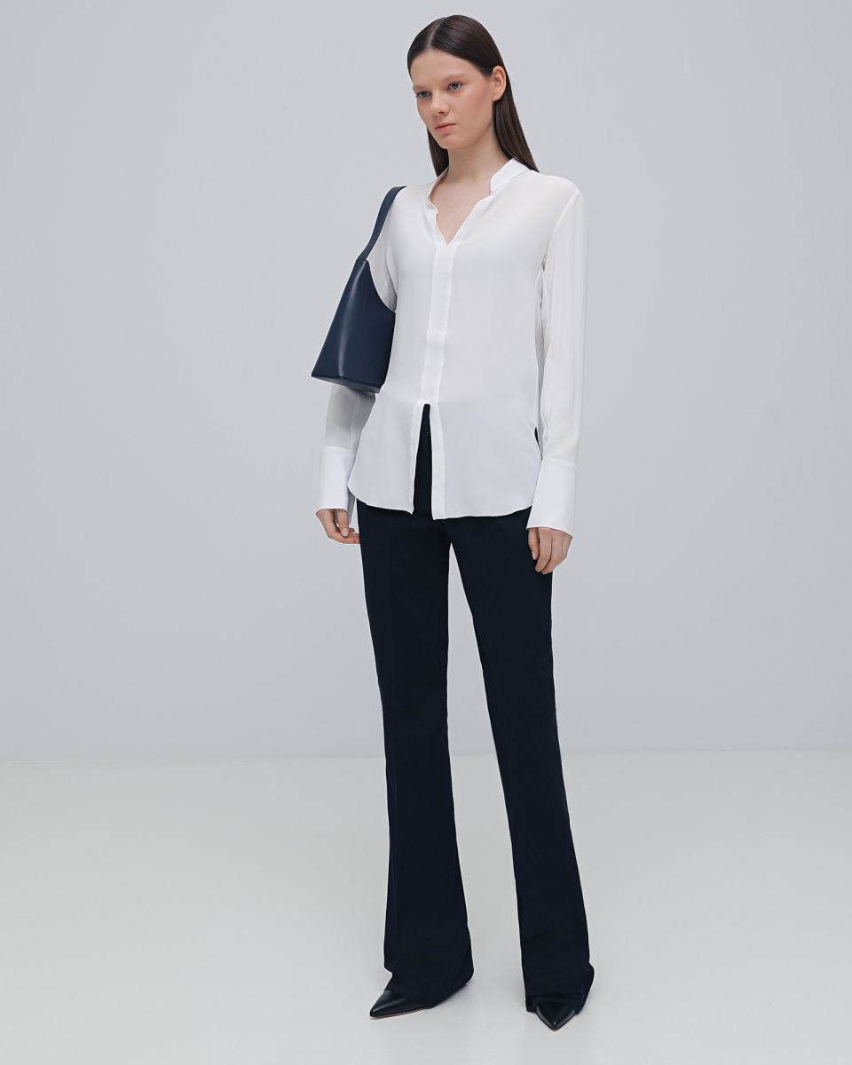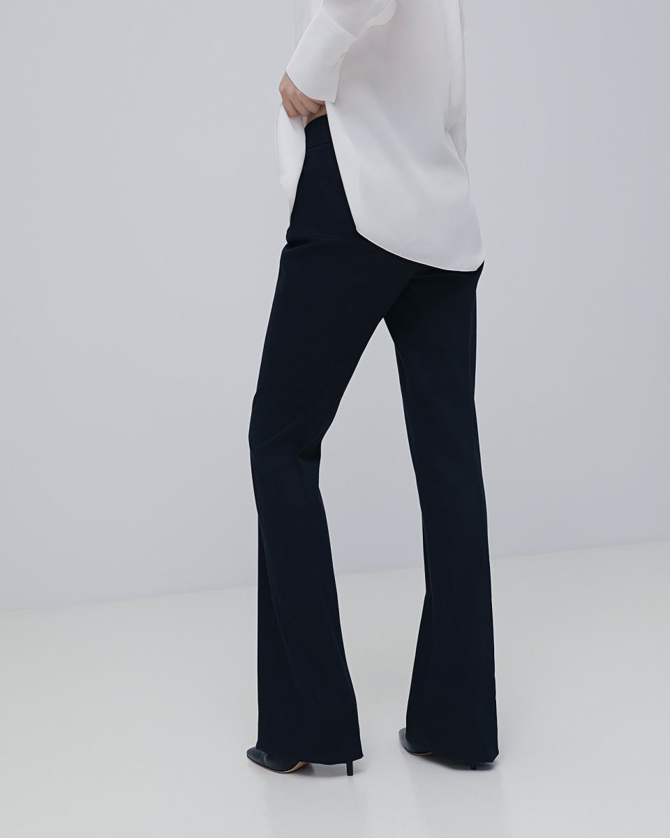 Темно-синие брюки, расклешенные к низу, от бренда Seafarer поддержат деловой стиль и добавят нотку элегантности в ваши образы. Модель выполнена из текстиля, в составе которого 98% хлопка и 2% эластана. Брюки дополнены декоративными карманами и стрелками вдоль штанин. Такую модель легко стилизовать с блузами и рубашками свободного кроя