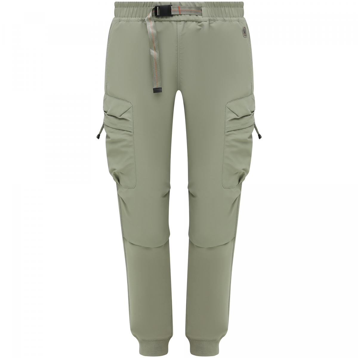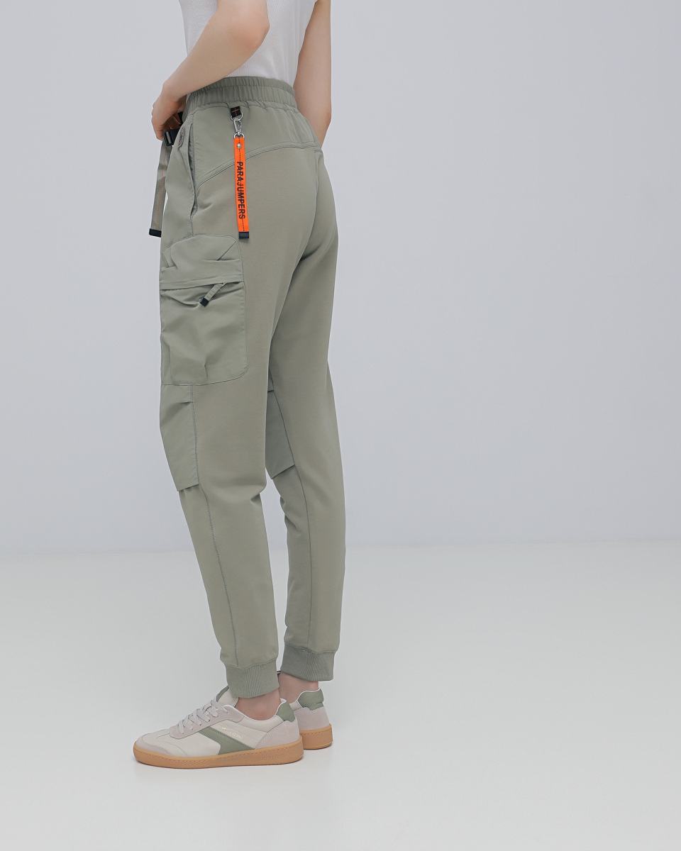 Брюки из трикотажа в цвете хаки от Parajumpers. Длинные брюки из эластичного хлопка с матовыми нейлоновыми вставками. Модель прекрасно подойдет к повседневным городским образам. Регулируемый пояс с ремнем на пряжке. Четыре кармана, два из которых на молнии. Эластичный ребристый низ. Нашивка Parajumpers спереди и легендарная оранжевая лента на карабине сзади.