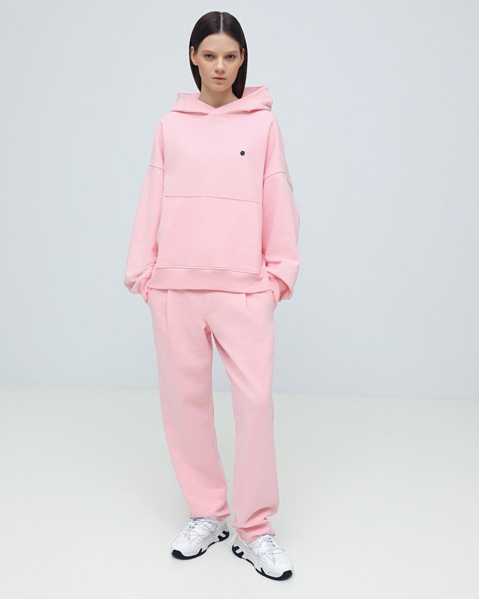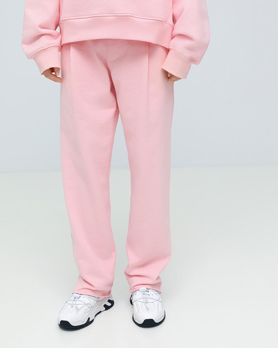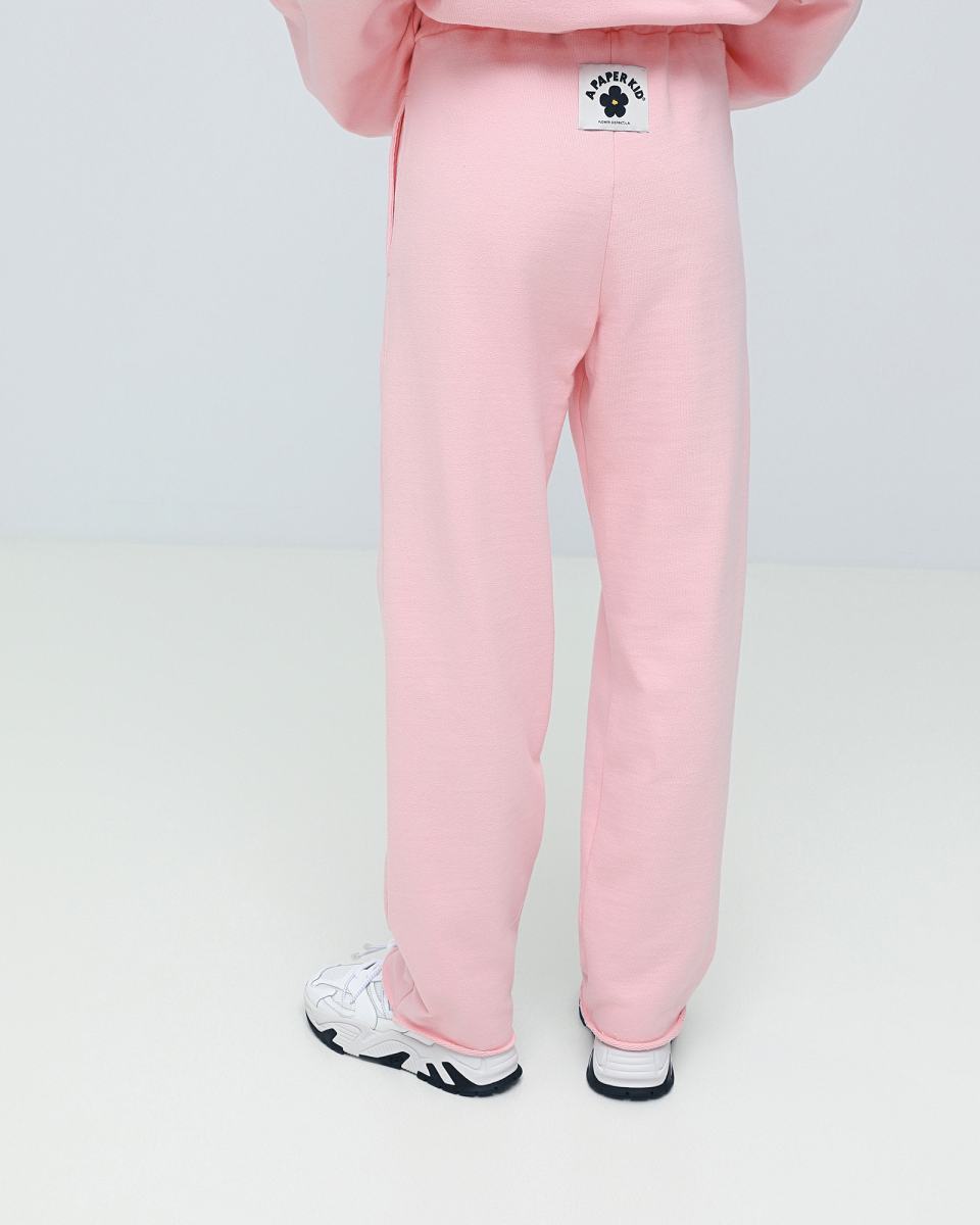 Брюки из хлопкового текстиля от A Paper Kid. Свободные брюки в розовом цвете выполнены из 100% хлопка. Модель свободного силуэта, с эластичным поясом и шнурком-кулиской, регулирующим посадку.