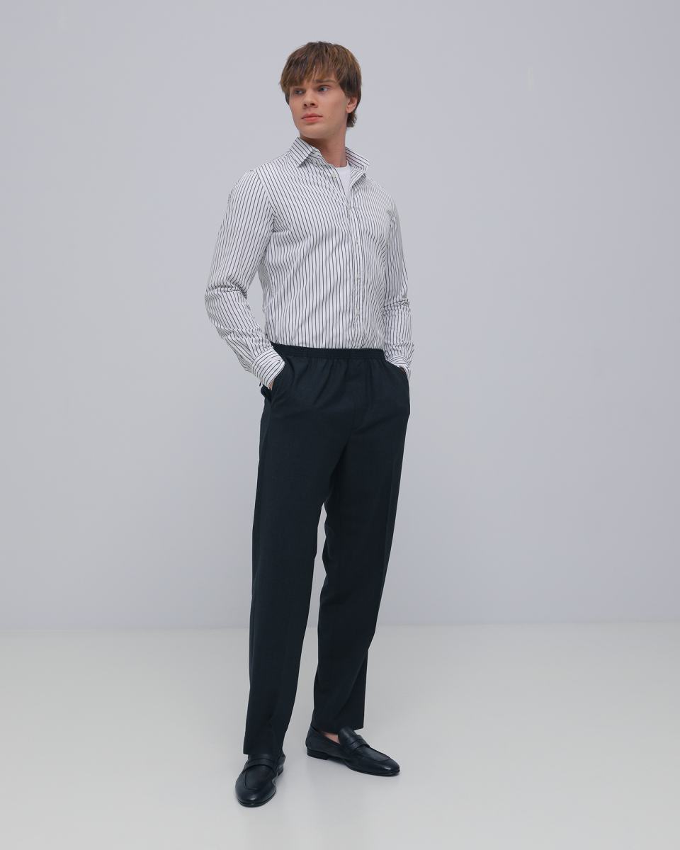 Повседневные брюки в тёмно-сером цвете от Cellar Door. Брюки прямого кроя выполнены из плотной фланелевой ткани с шерстью в составе. Эластичный пояс обеспечиваем комфорт, и в то же время идеальную посадку по фигуре. Передние американские карманы, задний карман с правой стороны на молнии. Подкладка кармана - 100% хлопок.