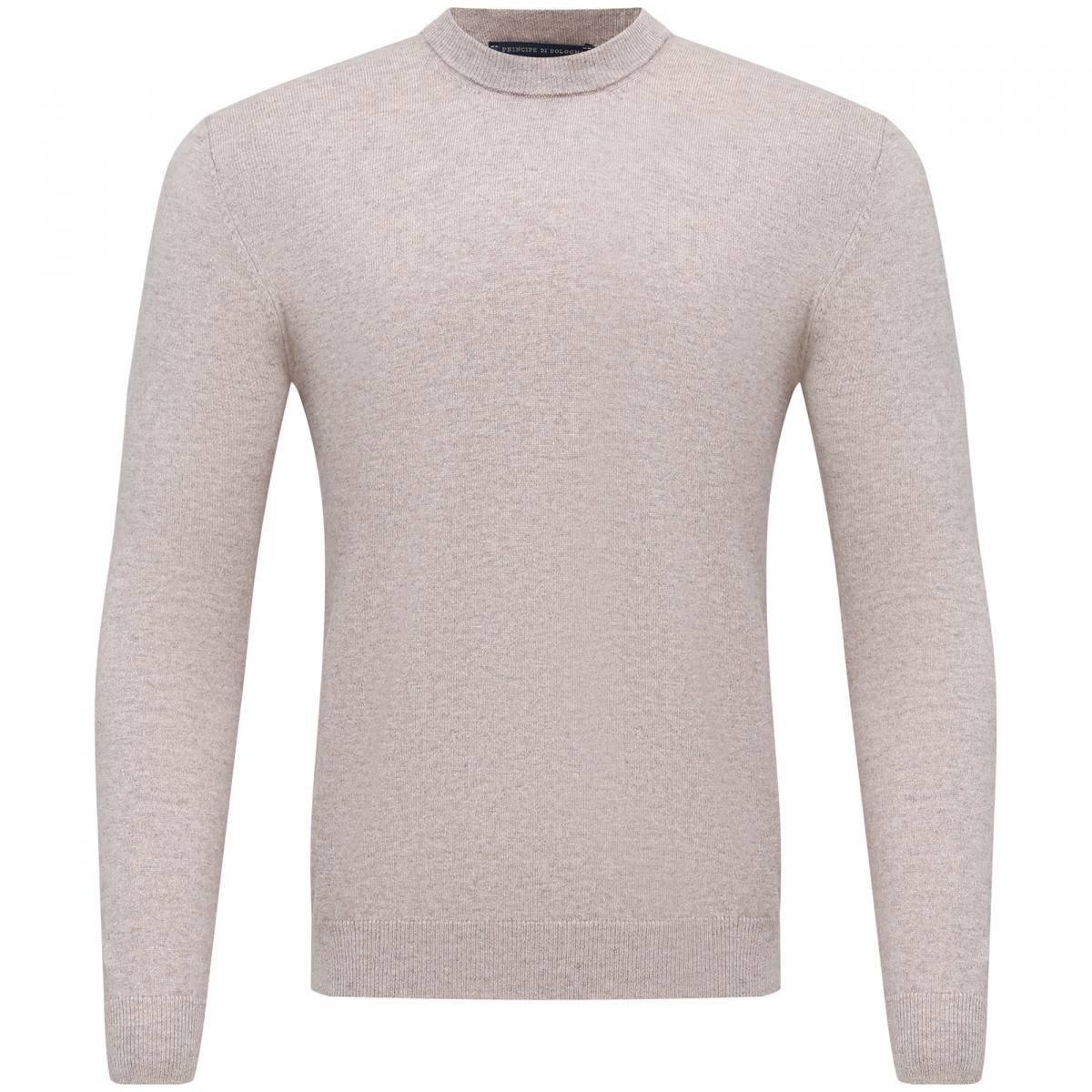 Джемпер из шерсти и кашемира от Principe di Bologna. Трикотажный джемпер в бежевом цвете может стать одной из любимых вещей в базовом гардеробе. Модель выполнена из теплой шерстяной ткани с кашемиром в составе и будет особенно актуальна в прохладные дни. У модели круглый воротник и прямой силуэт, а базовый цвет позволит сочетать джемпер с любым низом.
