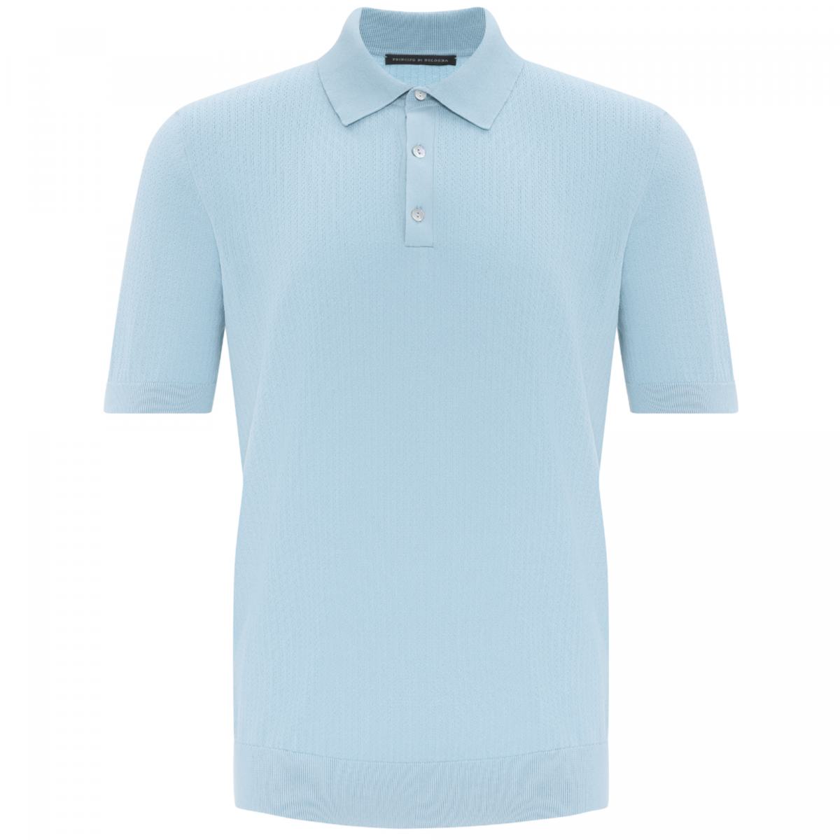 Джемпер с коротким рукавом от Principe di Bologna. Трикотажный джемпер в голубом цвете - базовая деталь гардероба на каждый день. У джемпера классический воротник на пуговицах, короткие рукава, эластичные манжеты и подол. Состав ткани: хлопок 93% и полиэстер 7%.