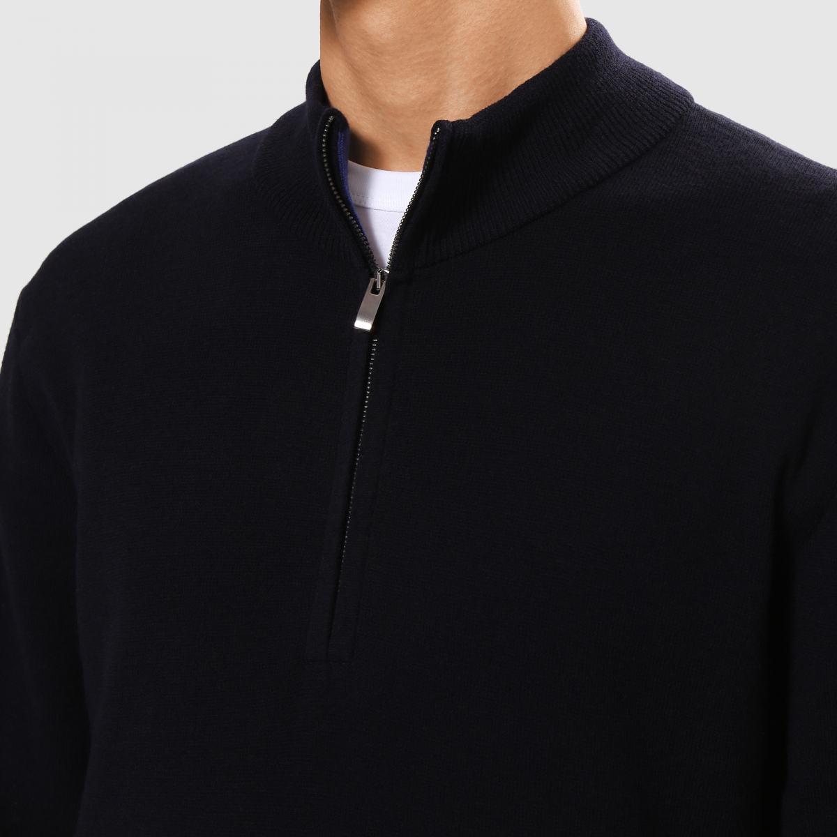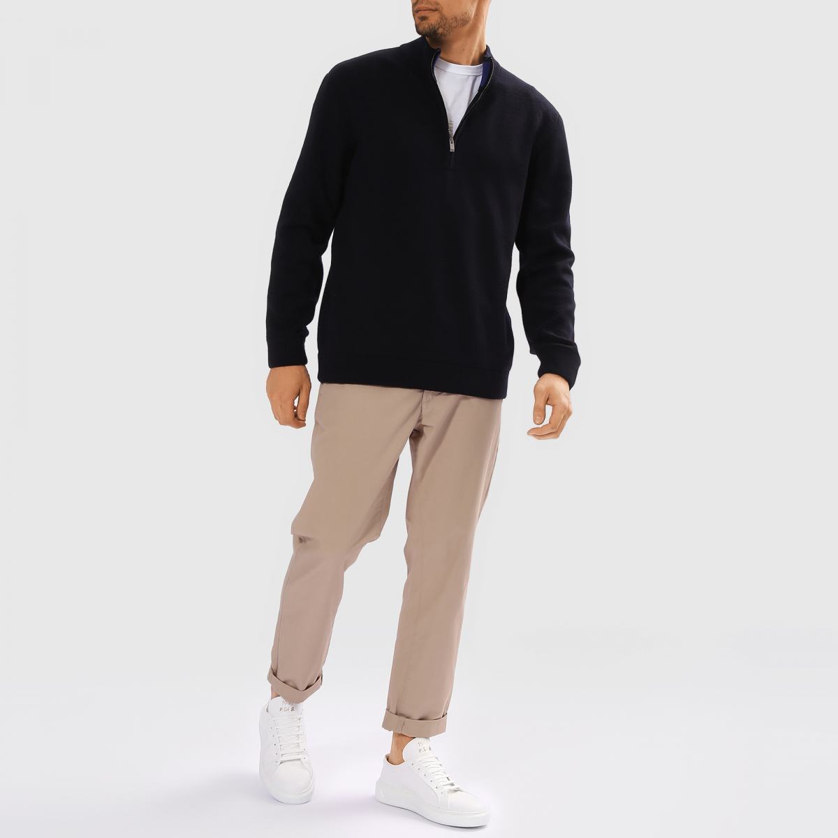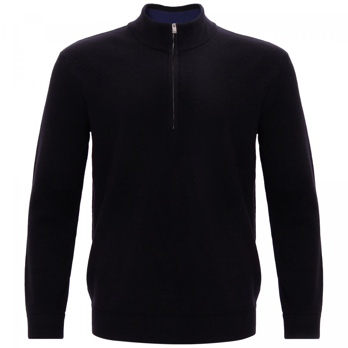 Джемпер от Principe di Bologna. Трикотажный тёмно-синий джемпер одной из любимых вещей в базовом гардеробе. Модель выполнена из тёплой трикотажной ткани, с высоким содержанием шерсти. Прямой силуэт позволит носить этот джемпер не только самостоятельно, но и в качестве второго слоя. Воротник-стойка с молнией, эластичные манжеты и подол.