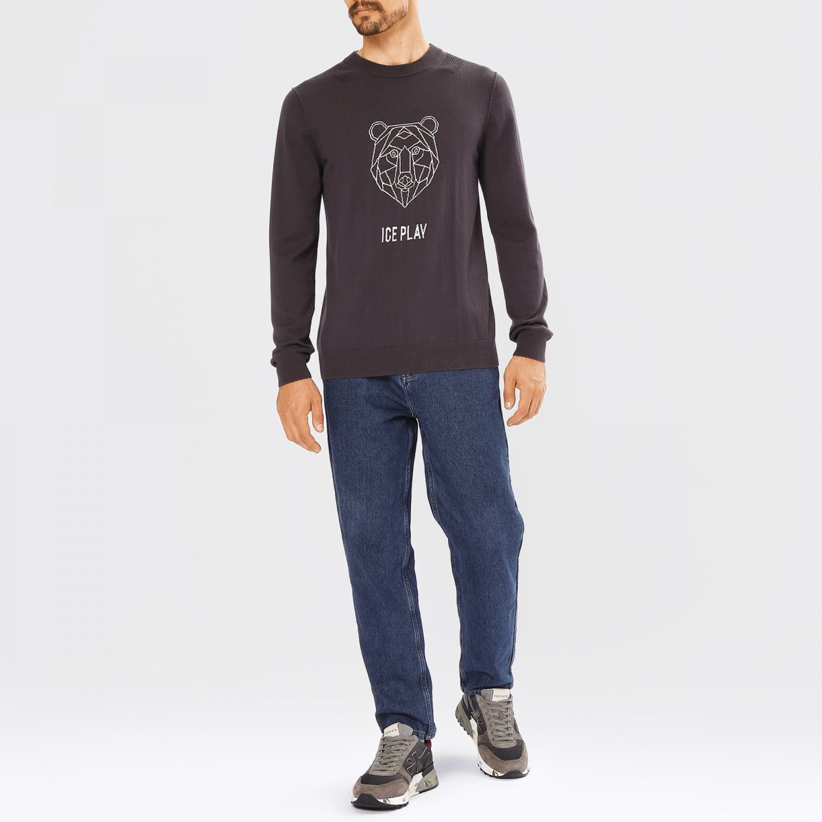Серый джемпер от Ice Play станет частью повседневного гардероба. Модель выполнена из трикотажа, в составе которого хлопок и шерсть. Ткань отлично пропускает воздух и, одновременно с этим, сохраняет тепло, поэтому джемпер станет комфортным вариантом на весь день. Спереди дизайн завершает изображение медведя и логотипа.