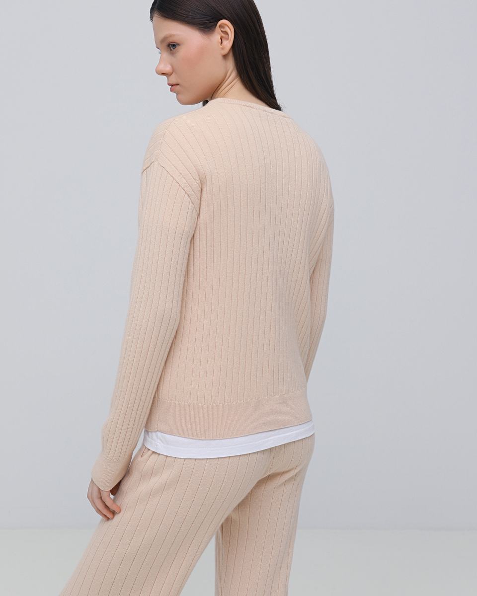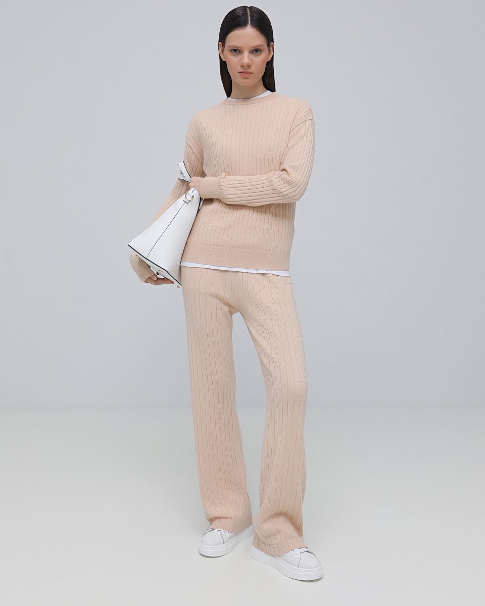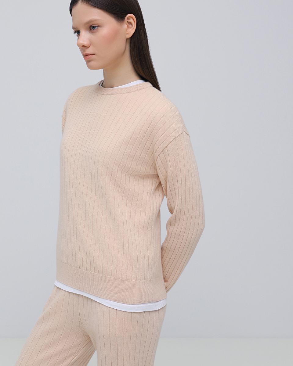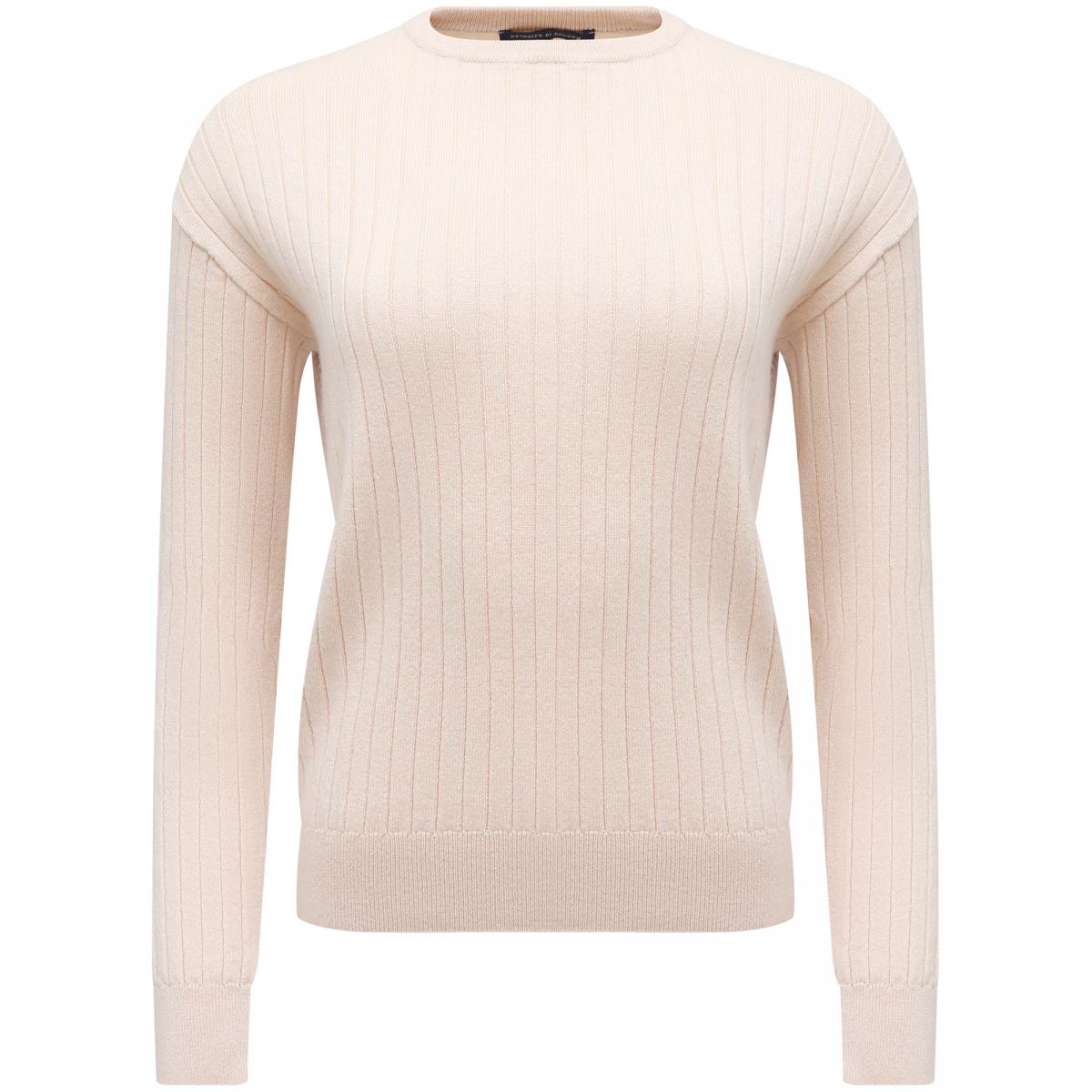 Бежевый джемпер Principe di Bologna станет основой для создания комфортных образов. Модель выполнена из трикотажа, в составе которого 70% кашемира и 30% шелка. Вертикальный рисунок вязки и прямой крой визуально вытягивает силуэт. Джемпер можно носить комплектом с трикотажными брюками из капсулы бренда или сочетать с любыми другими низами.