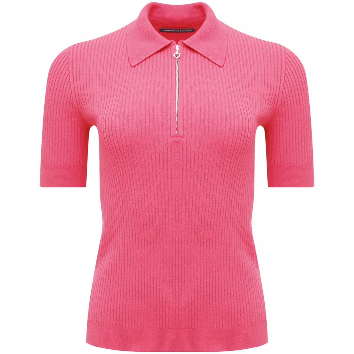 Джемпер-поло в розовом цвете от Principe di Bologna станет ярким акцентом повседневных образов. Модель выполнена из эластичного трикотажа, в составе которого 67% вискозы, 29% акрила и 4% полиэстера. Джемпер дополнен серебристой молнией. Прилегающий крой позволит носить этот джемпер навыпуск и в заправленном виде, а также сочетать с любыми низами.