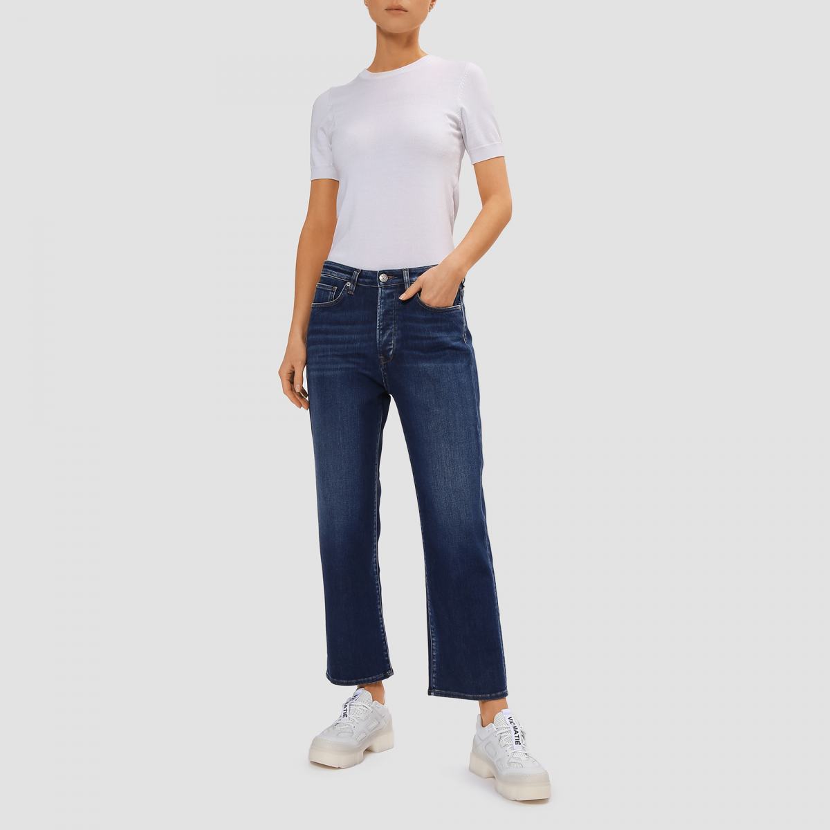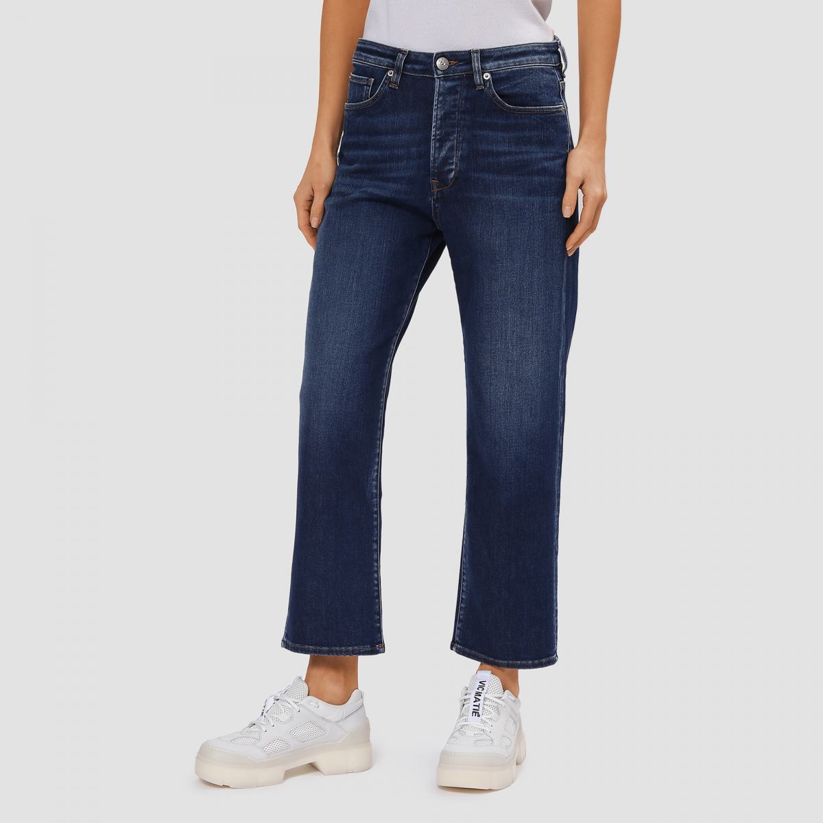 Джинсы в насыщенном синем цвете от 3x1. Культовая модель в винтажном свободном крое. Модель выполнена из роскошной мягкой хлопчатобумажной ткани с застёжкой на пуговицы и внутренним швом во всю длину. Этот фирменный фасон разработан для непринуждённой посадки, чтобы подчеркнуть женственные формы с укороченным прямым силуэтом. Свободный крой, очень высокая посадка, джинсовая ткань во всю длину.