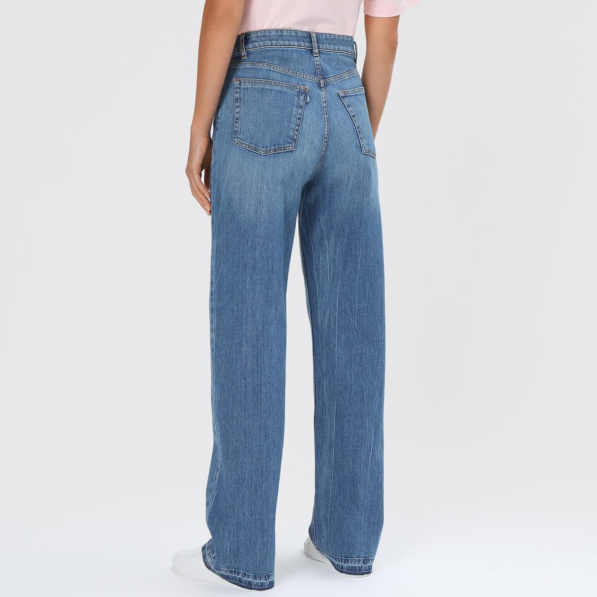 Голубые джинсы от 3x1. Культовая модель Diana — удлинённая модель с высокой посадкой и прямыми штанинами. В этом сезоне брюки изготовлены из органического, переработанного, комфортного эластичного хлопка весом 11 унций и дополнены свободным краем. Застёжка на пуговицу и молнию, 5 карманов.