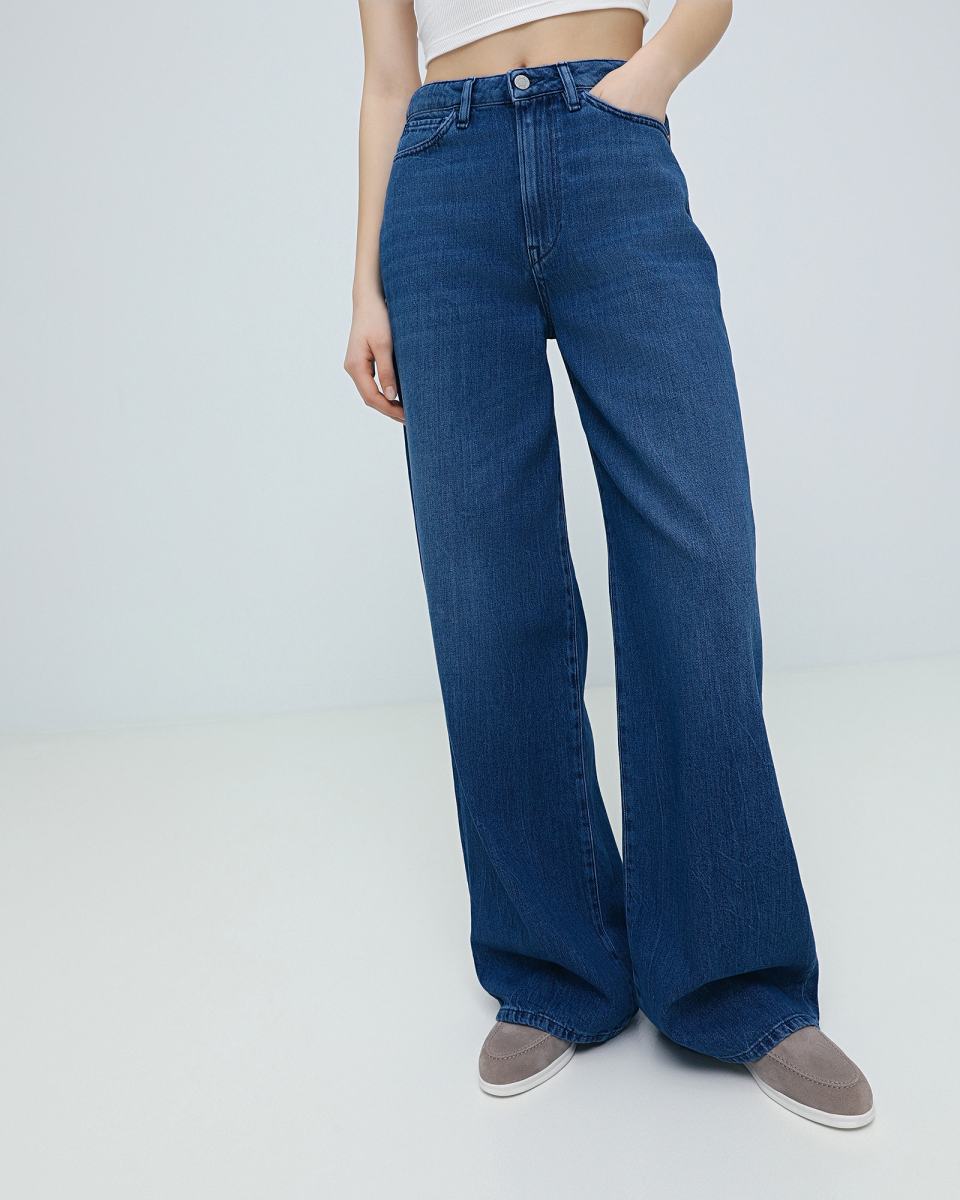 Синие джинсы от 3x1. Знаменитые джинсы Flip Jean, известные своими очень широкими штанинами и очень высокой посадкой, в этом сезоне дополнены совершенно новой тканью Tencel. Тенсел — это натуральный материал из 100% хлопка, который создает ощущение жесткости и придает более упругий вид. Застежка на пуговицу и молнию, передние и задние карманы.