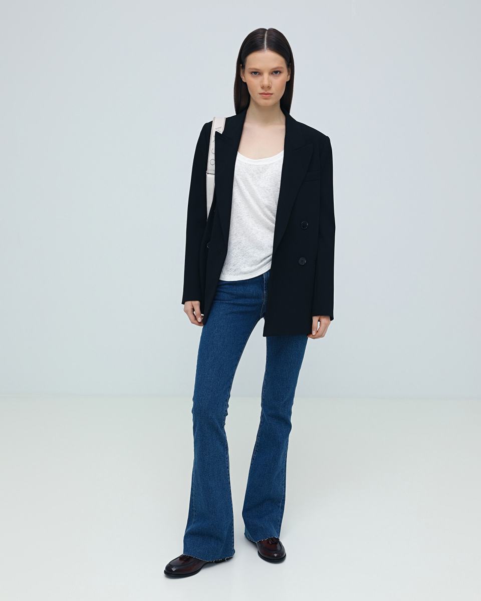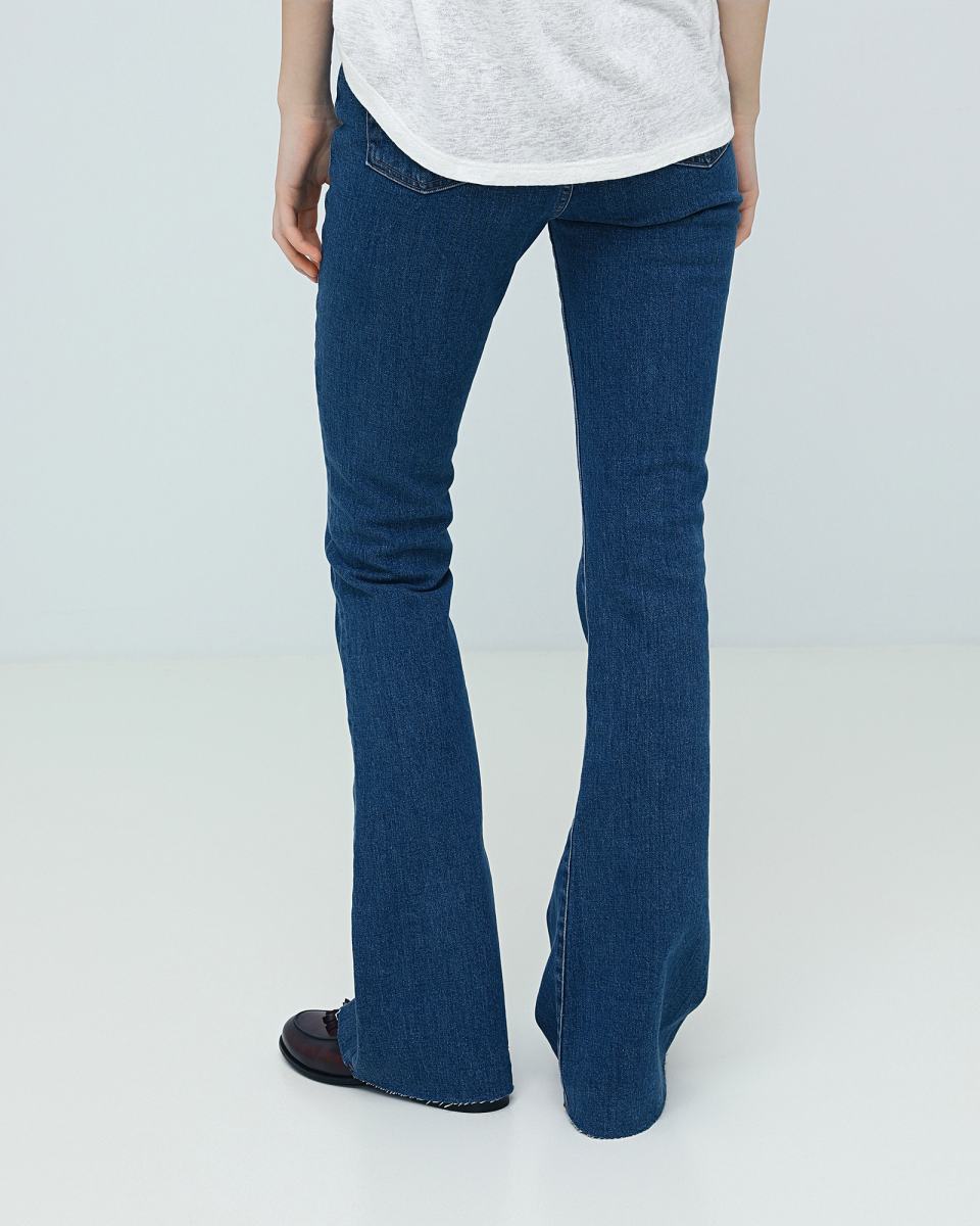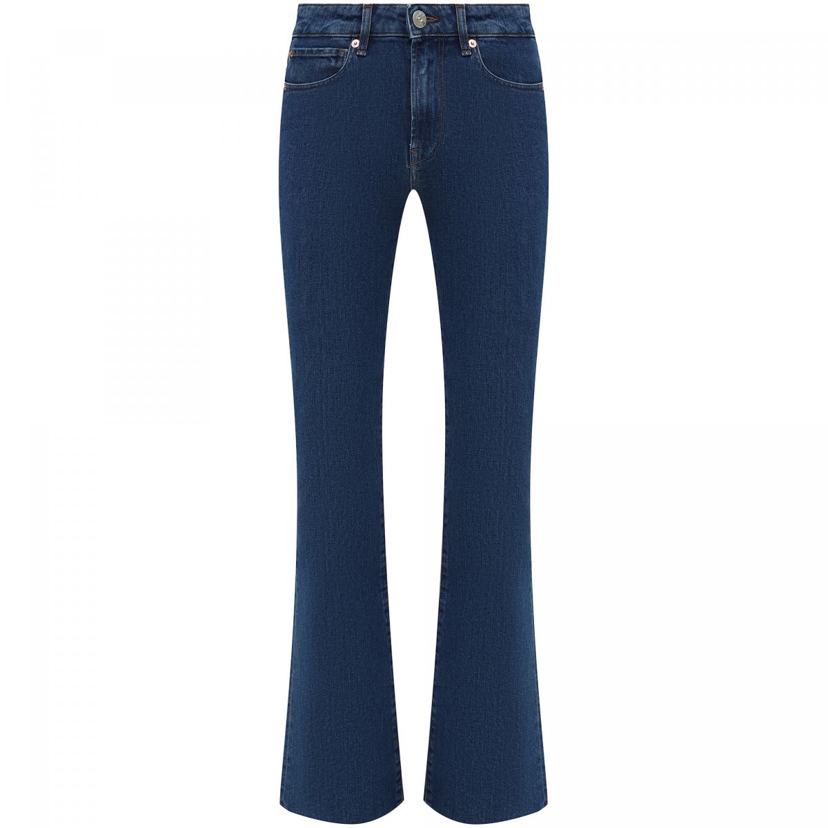 Тёмно-синие джинсы от 3x1. Силуэт модели Farrah облегает бедра и бедра, а затем расширяется от колен. Модель средней посадки, выполненная из плотного денима с 98% хлопка и 2% эластана в составе. Застежка на пуговицу и молнию, передние и задние карманы.