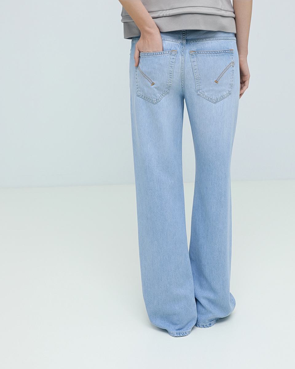 Джинсы от DONDUP. Голубые джинсы прямого кроя станут базой для весенне-летнего сезона. Модель выполнена из 100% лиоцелла, дополнена карманами спереди и сзади. Дизайн без лишних деталей позволит легко подобрать к джинсам любой верх из базового гардероба.
